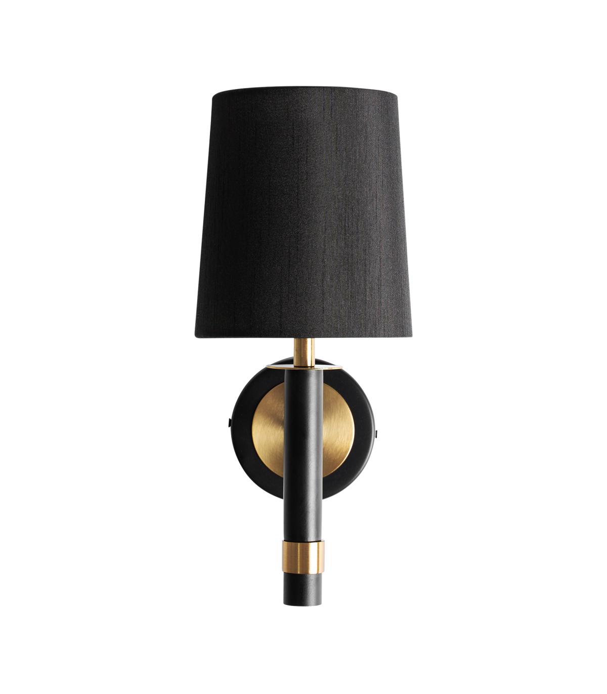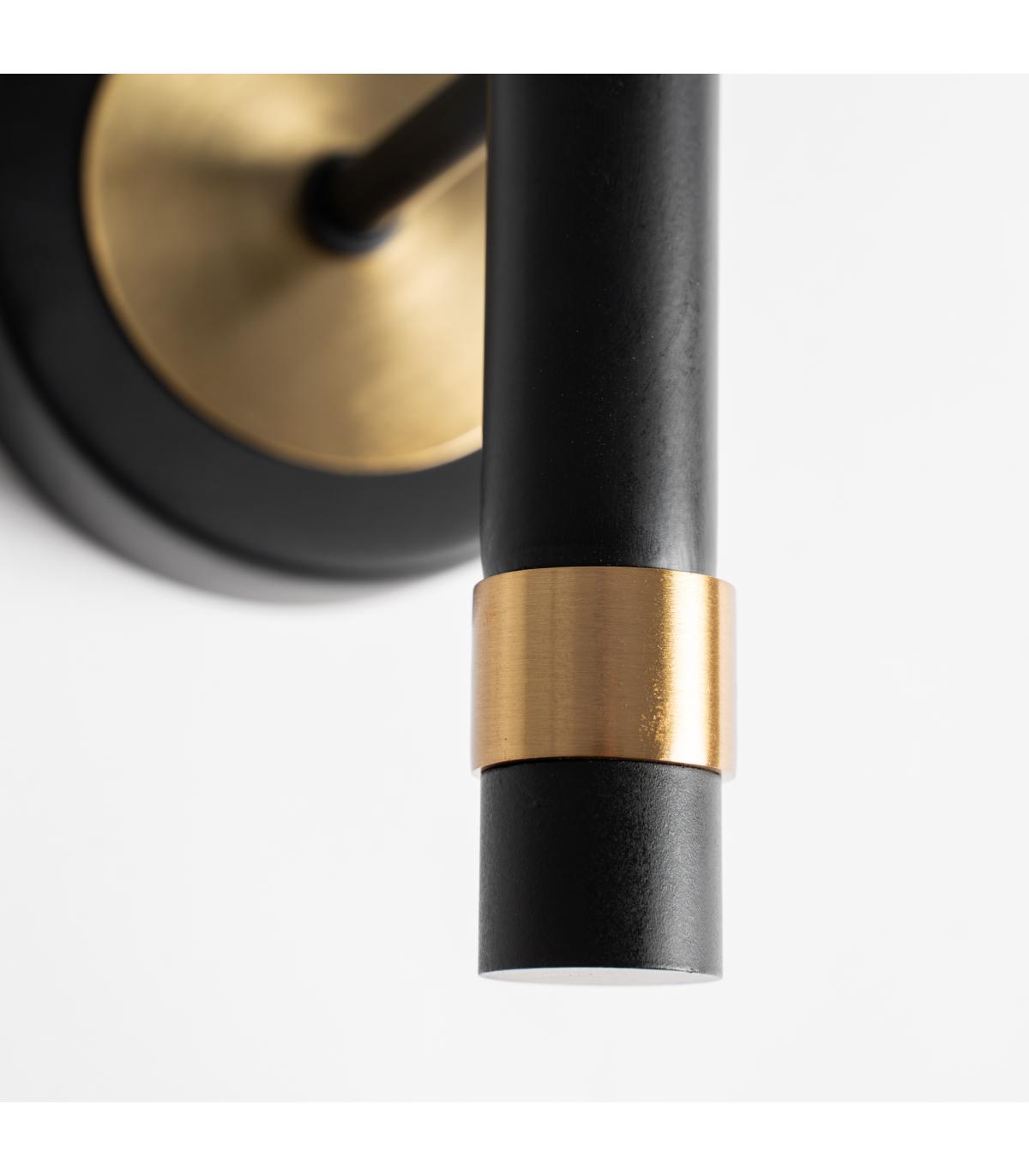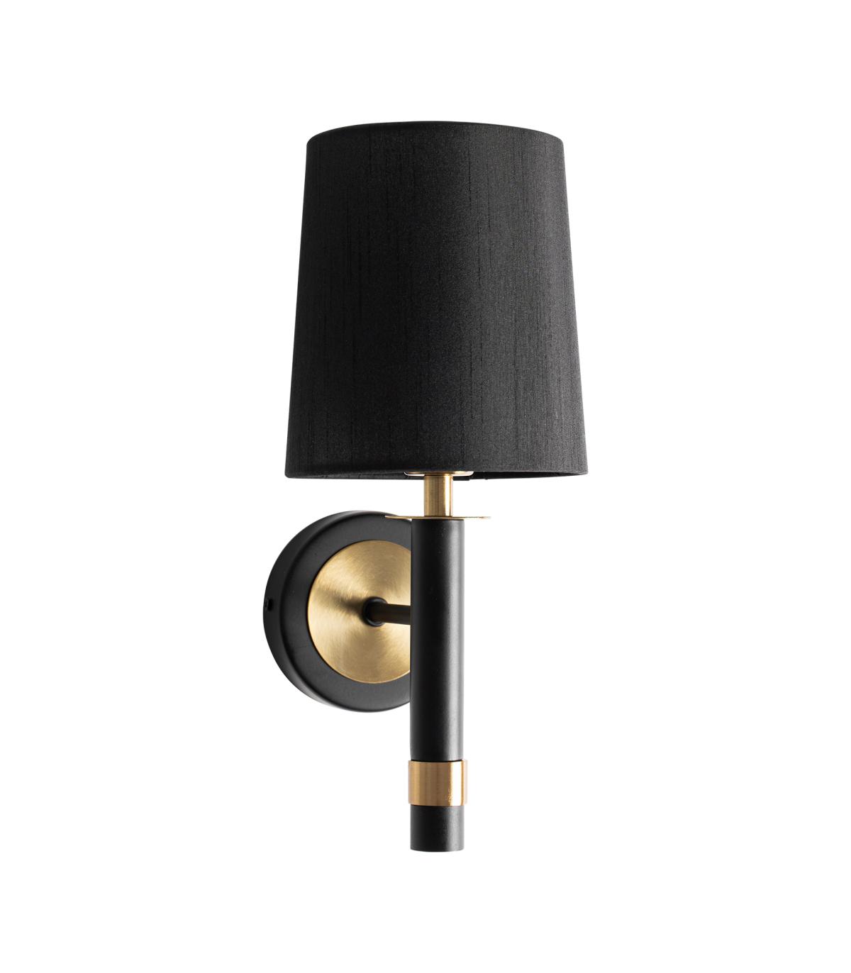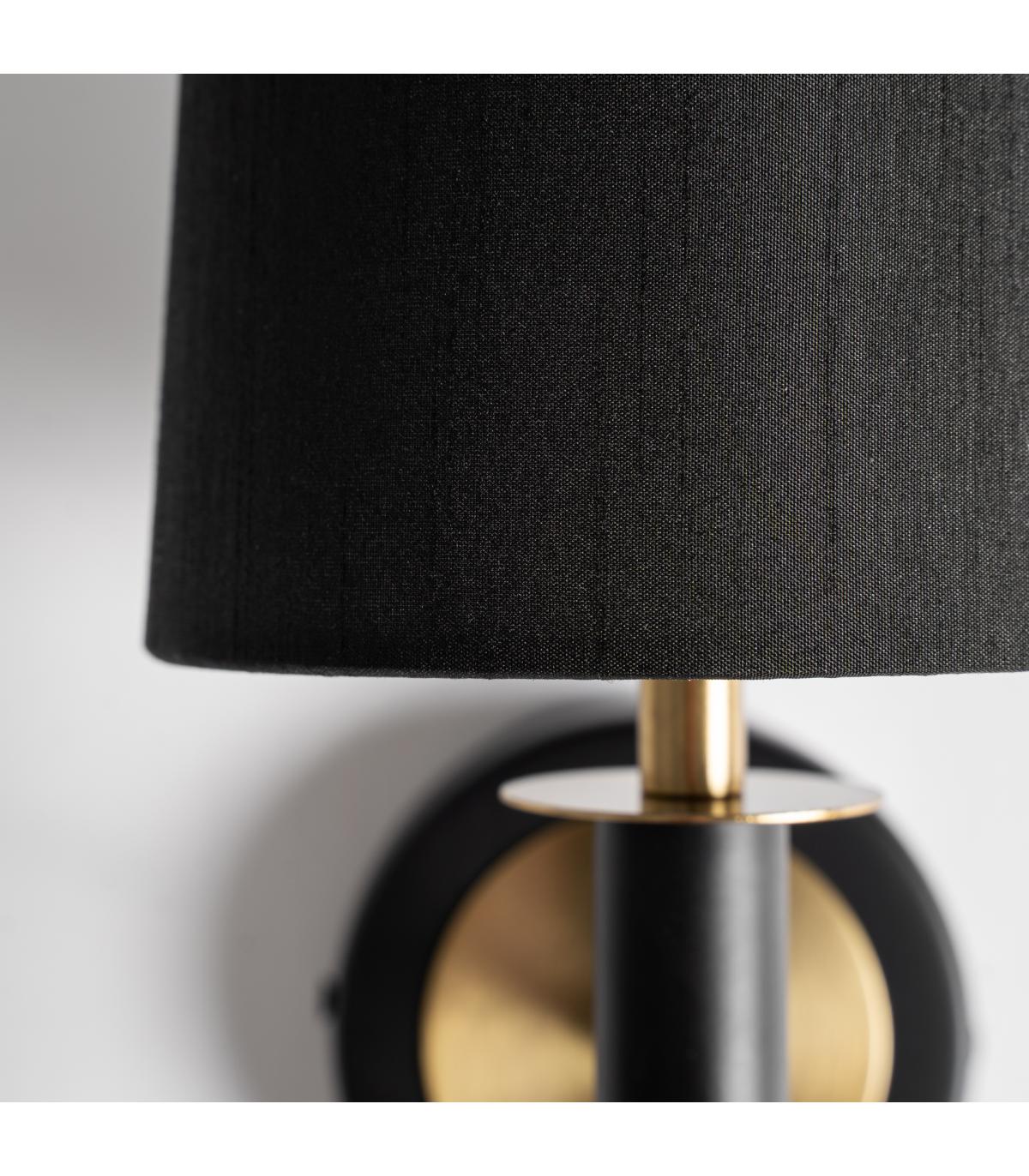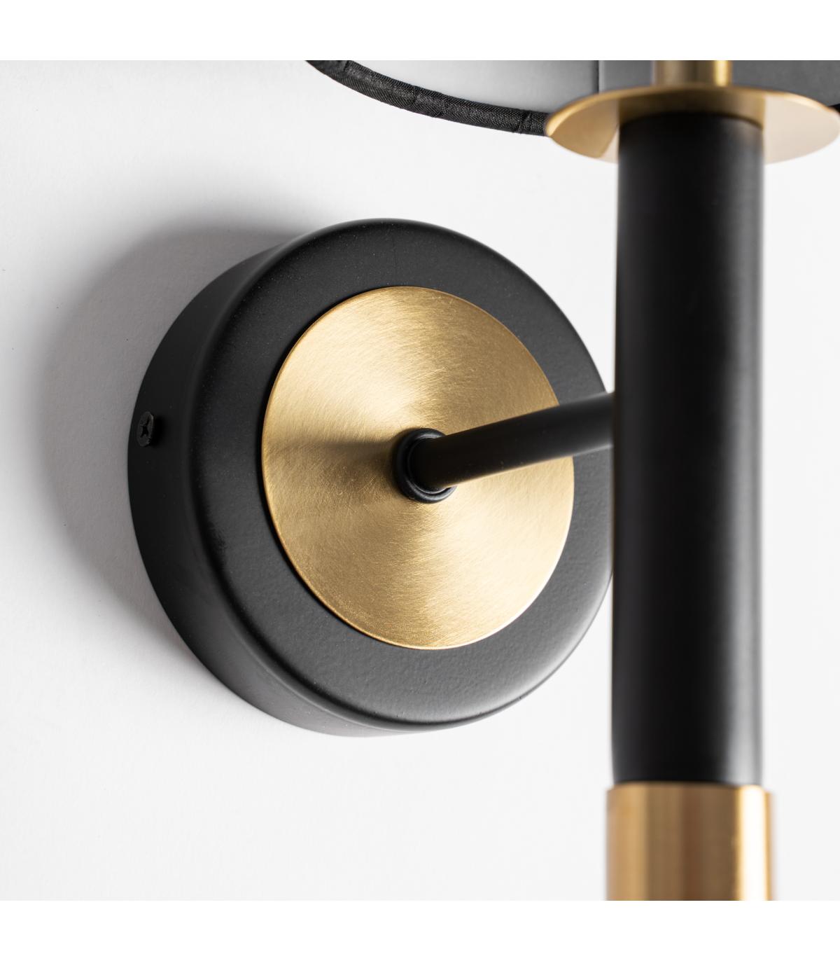 Aplique Cloe de estilo art deco fabricado en acero en color negro en color oro y poliéster en color negro. Producto desmontable.