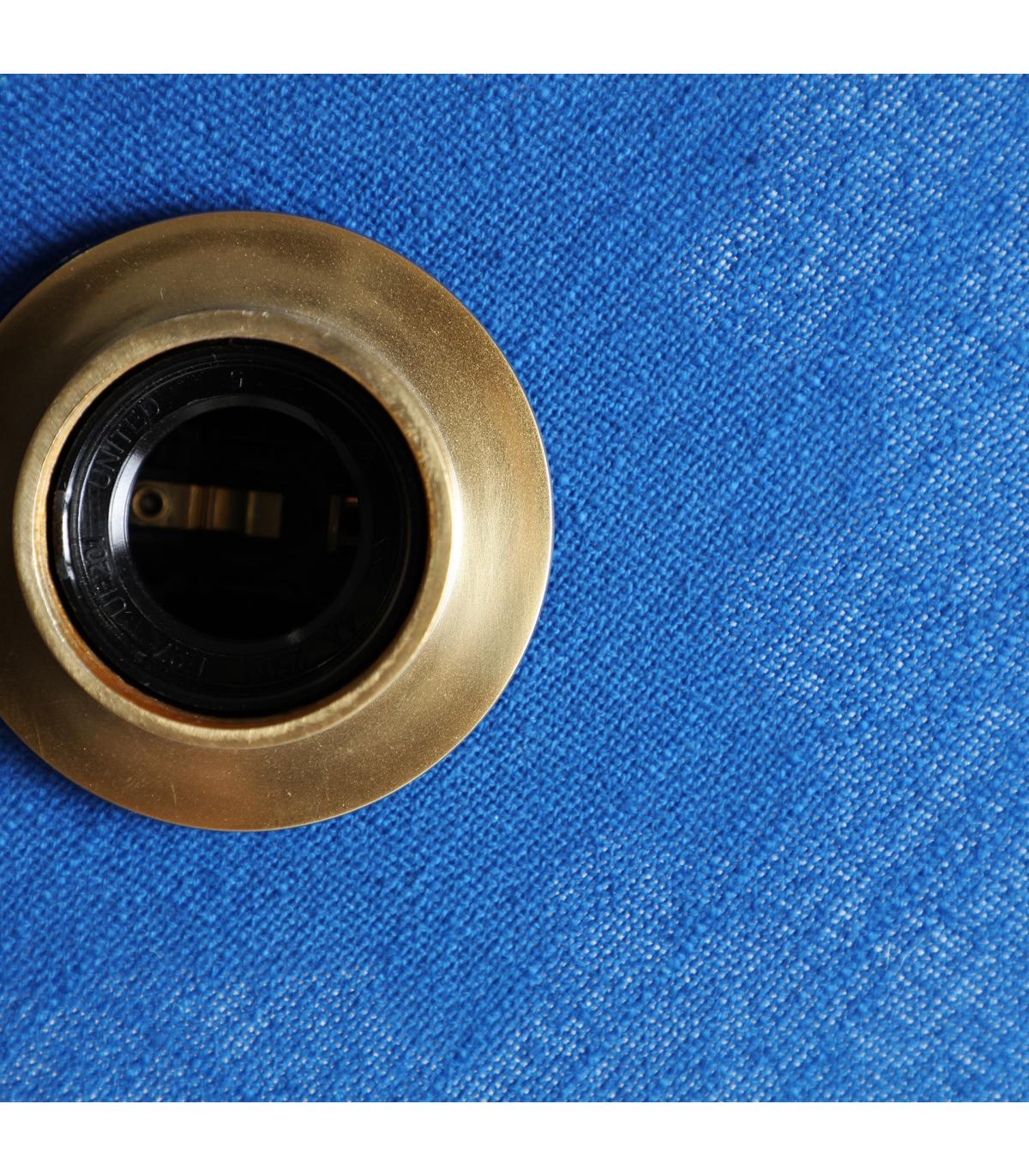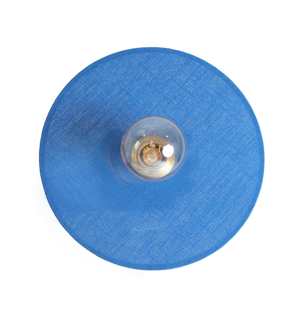 Aplique Vetra de estilo contemporáneo, fabricado en algodón en color azul, combinado con aluminio en color dorado y hierro en color negro.