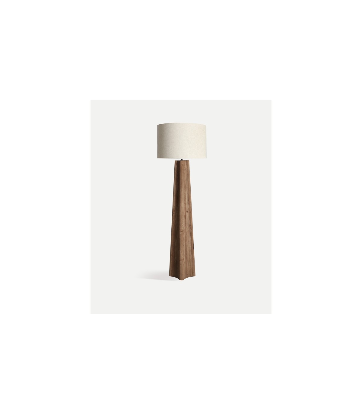 Lámpara de pie, fabricado en madera de mango en color marrón, combinado con yute en color crema.