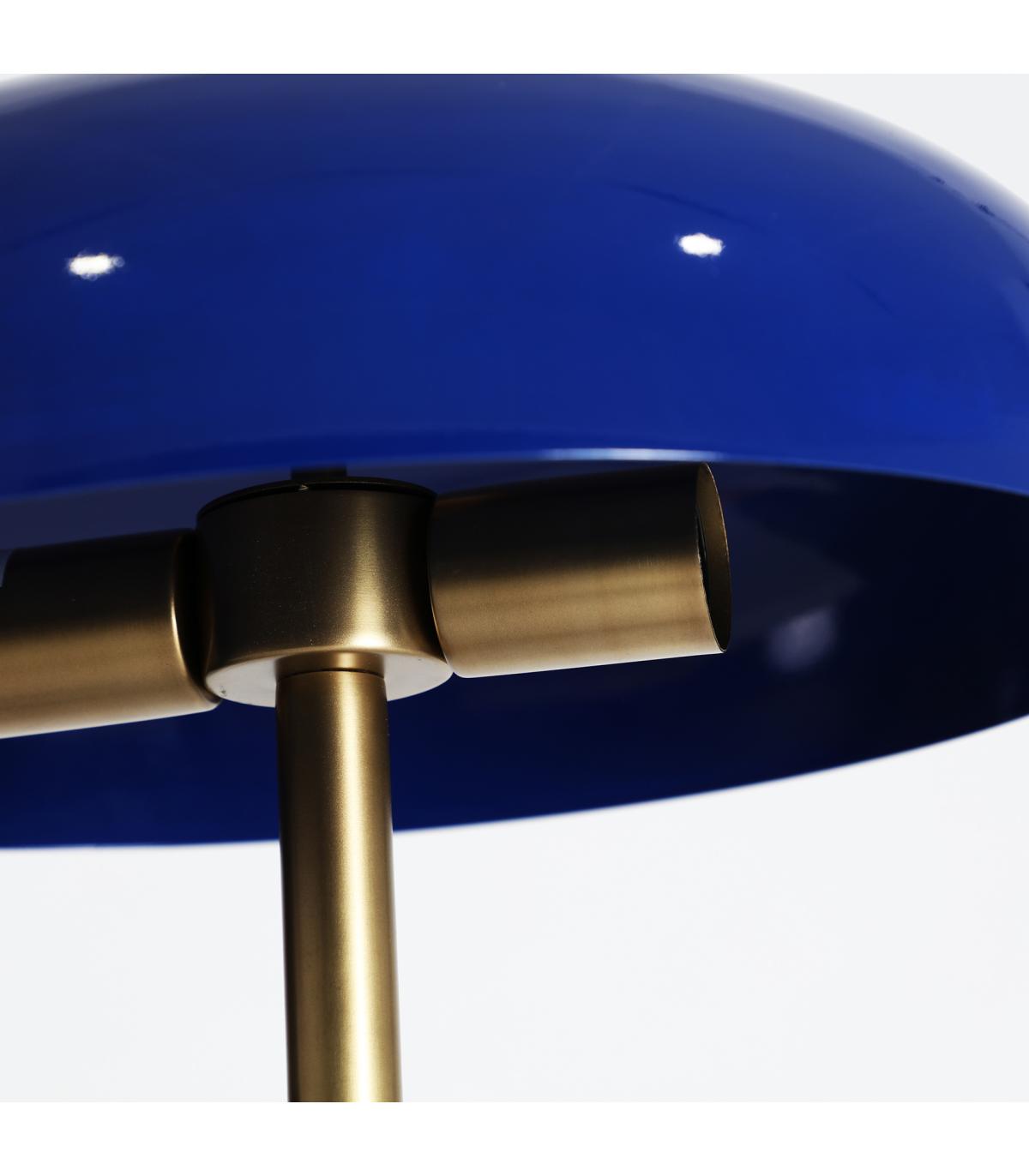 Lámpara de pie Glitter de estilo contemporáneo, fabricado en hierro en color azul con acabado brillo, combinado con hierro en color dorado y aluminio en color gris.