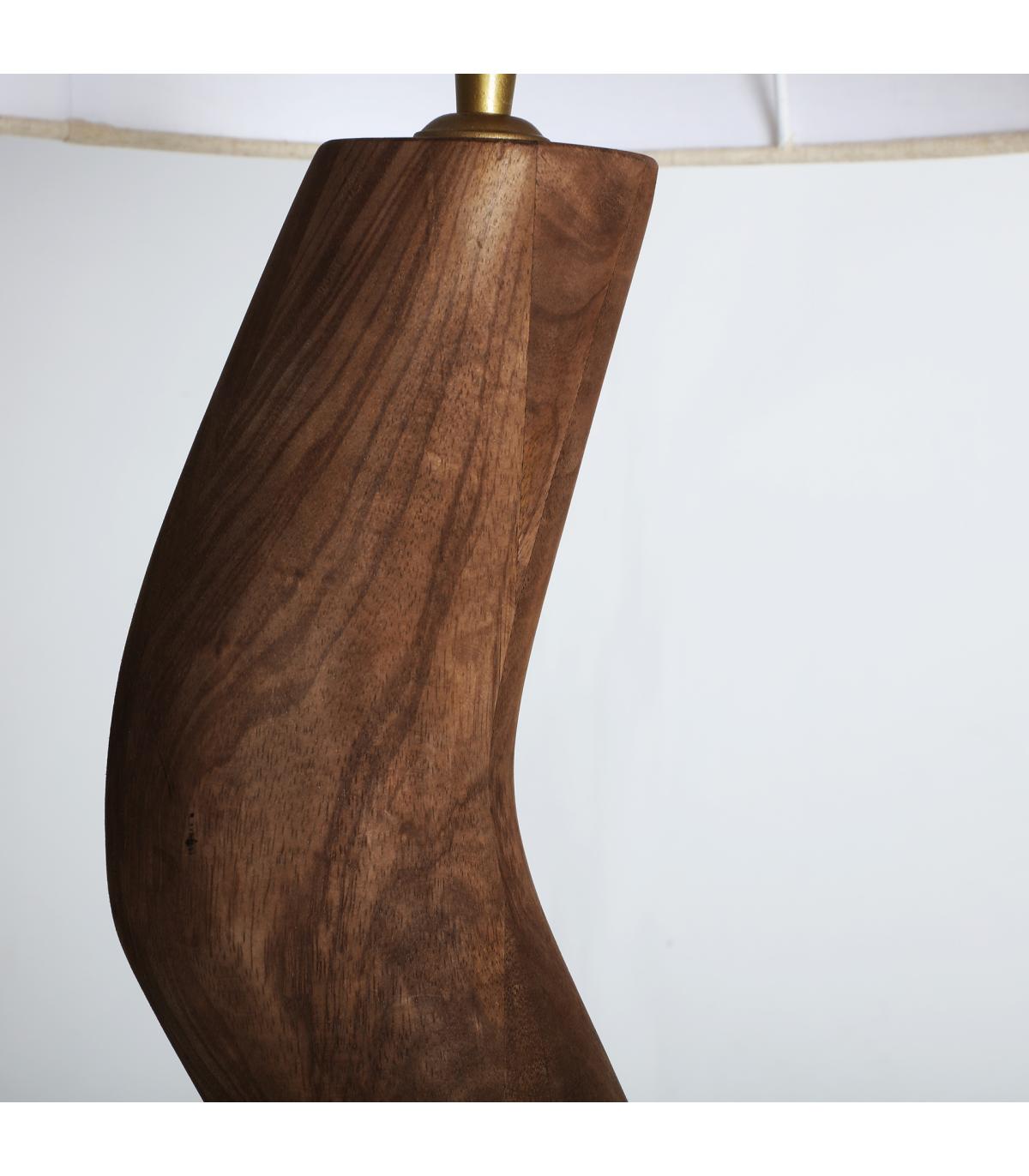 Lámpara de pie Onda de estilo clásico, fabricado en madera de mango en color marrón, combinado con lino en color crema.