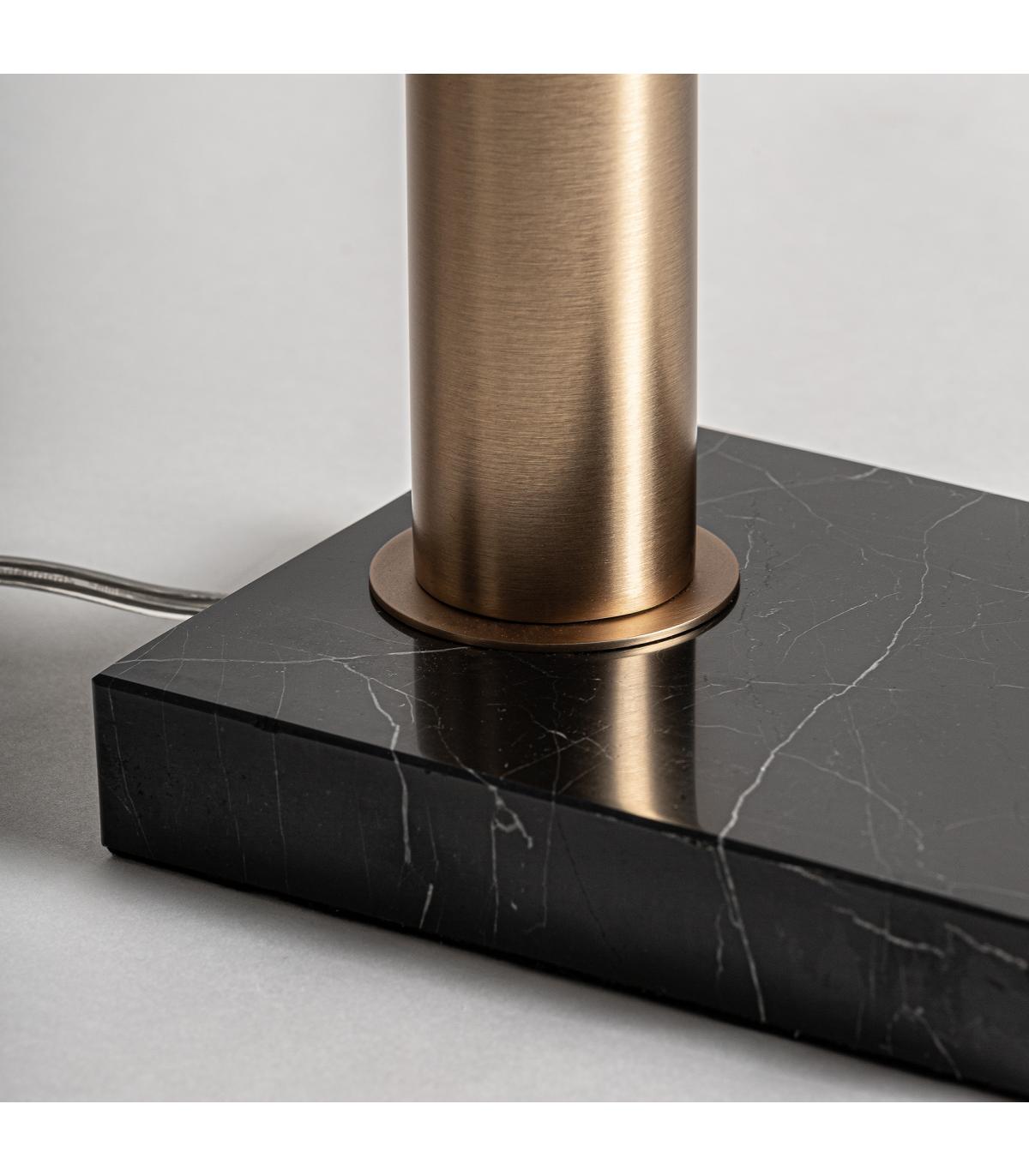 Lámpara de pie Akros de estilo art deco fabricado en hierro en color negro combinado con mármol en color oro.