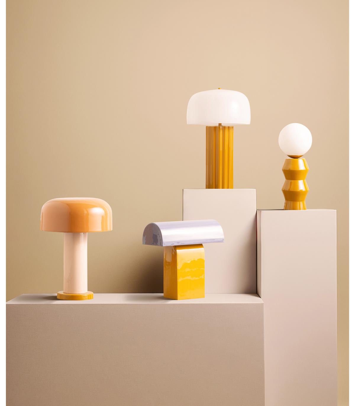 Lámpara de sobremesa Albate de estilo moderno, fabricado en hierro en color ambar en color rosa. Producto desmontable.