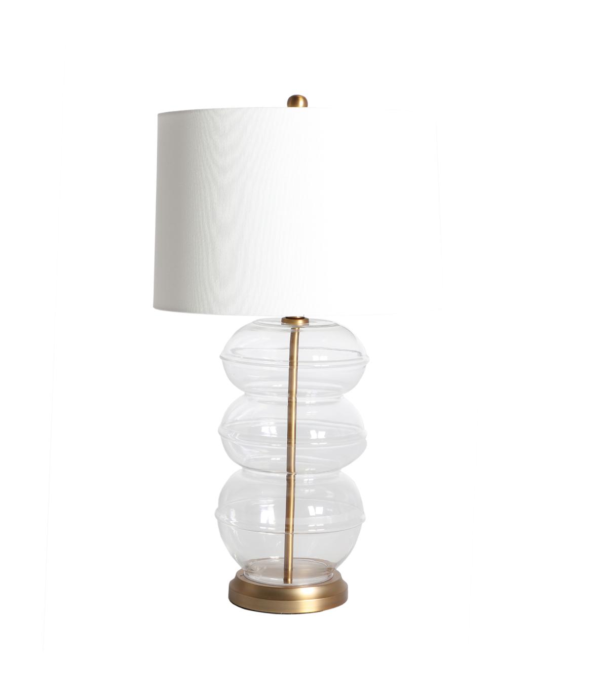 Lámpara de sobremesa de estilo clásico fabricado en hierro en color transparente combinado con cristal y lino. Producto desmontable.