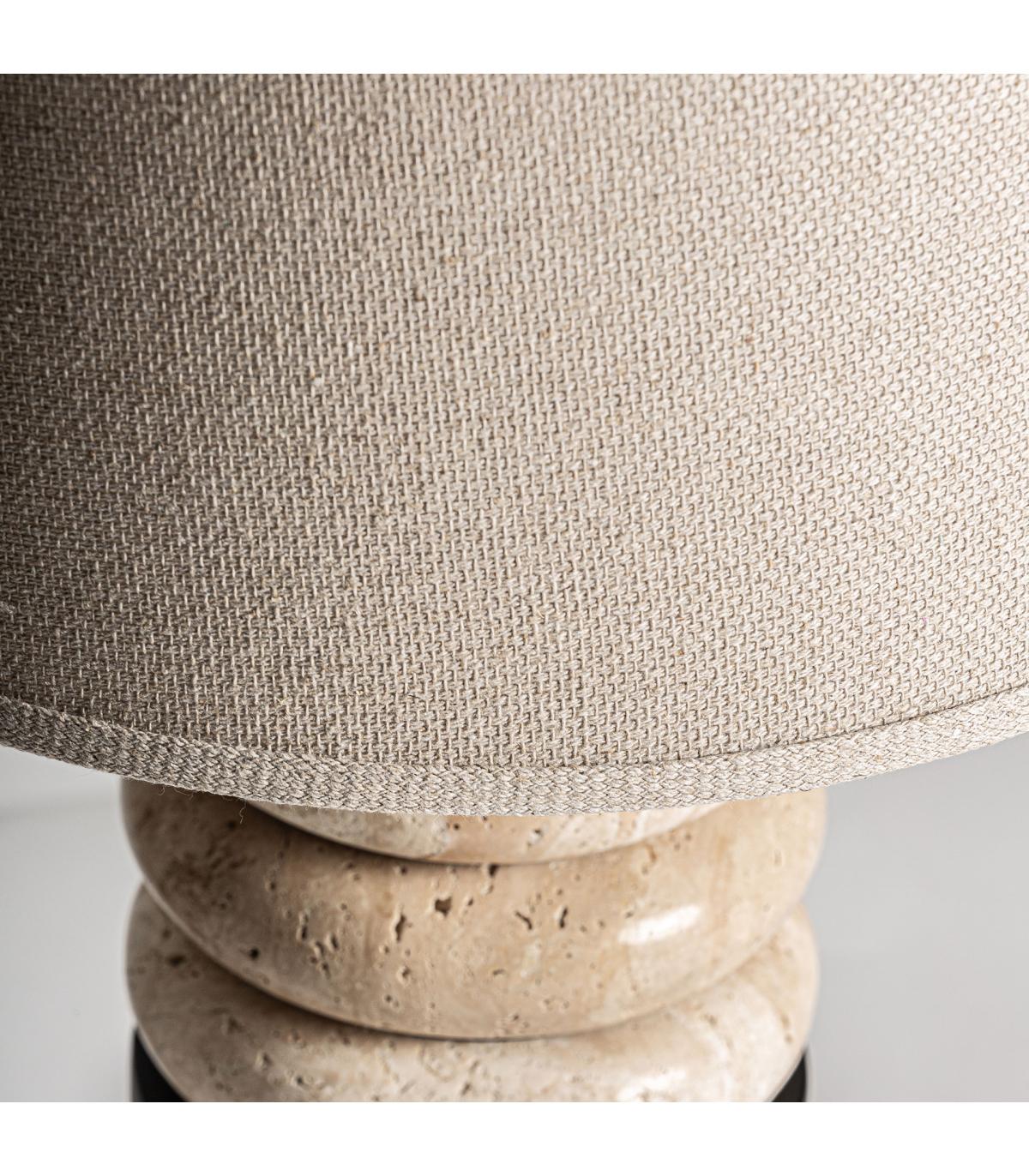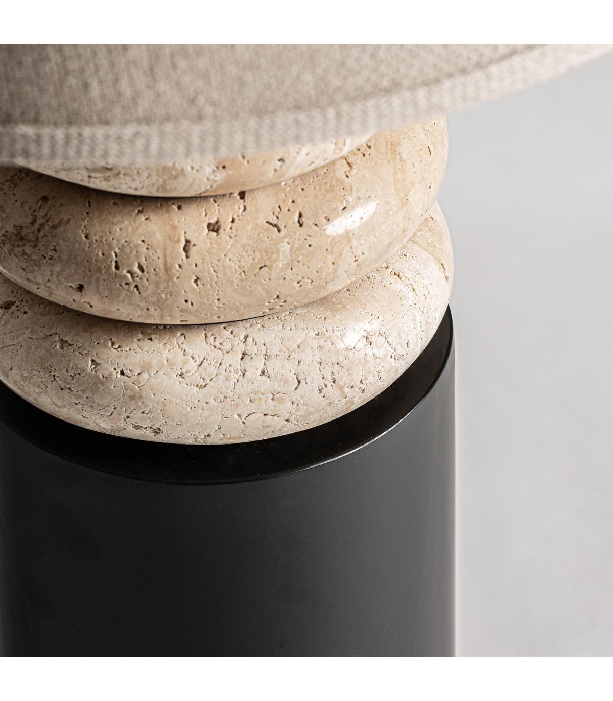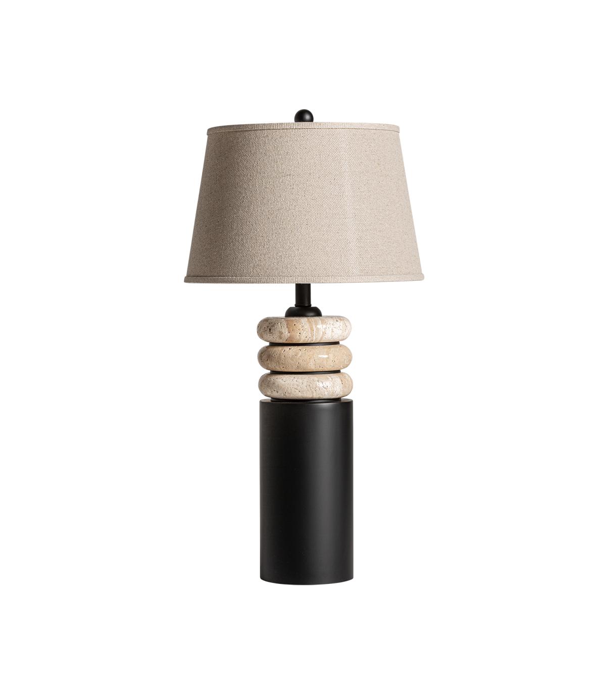 Lámpara de sobremesa Axis de estilo art deco fabricado en mármol en color negro combinado con hierro en color marrón y lino. Producto desmontable.