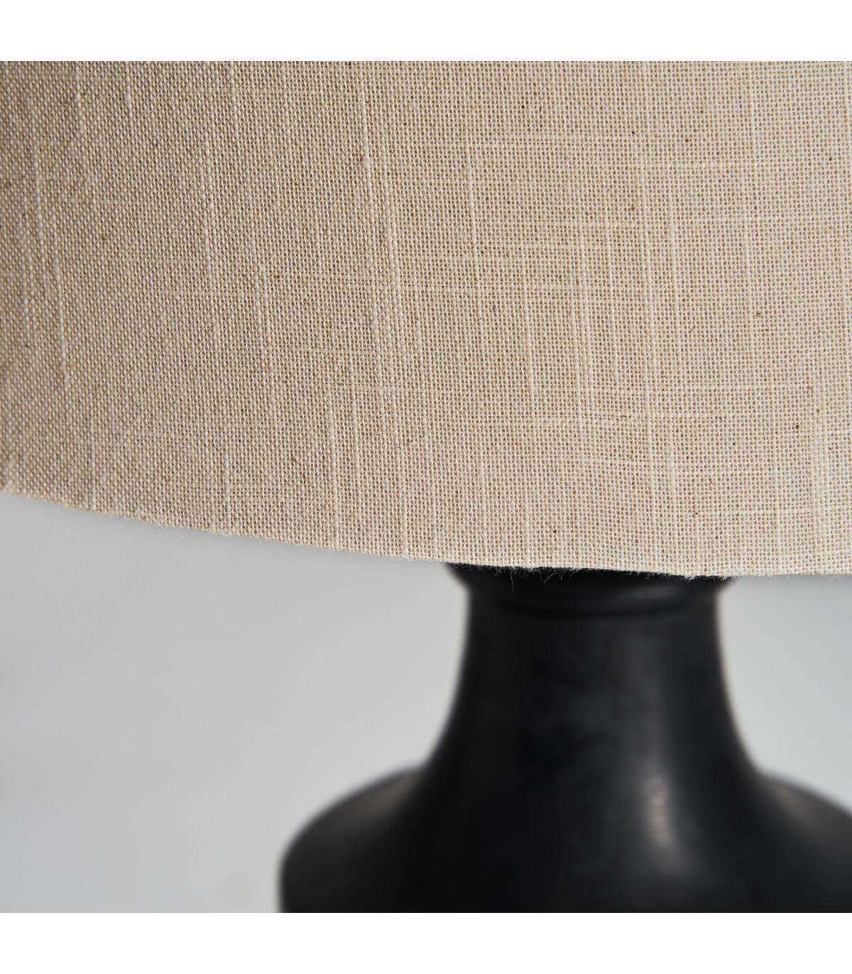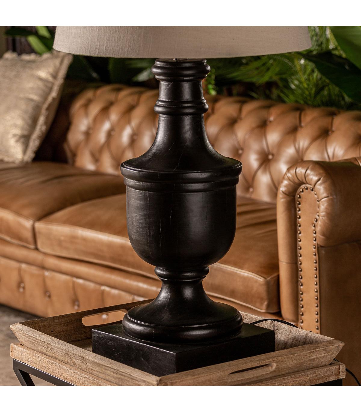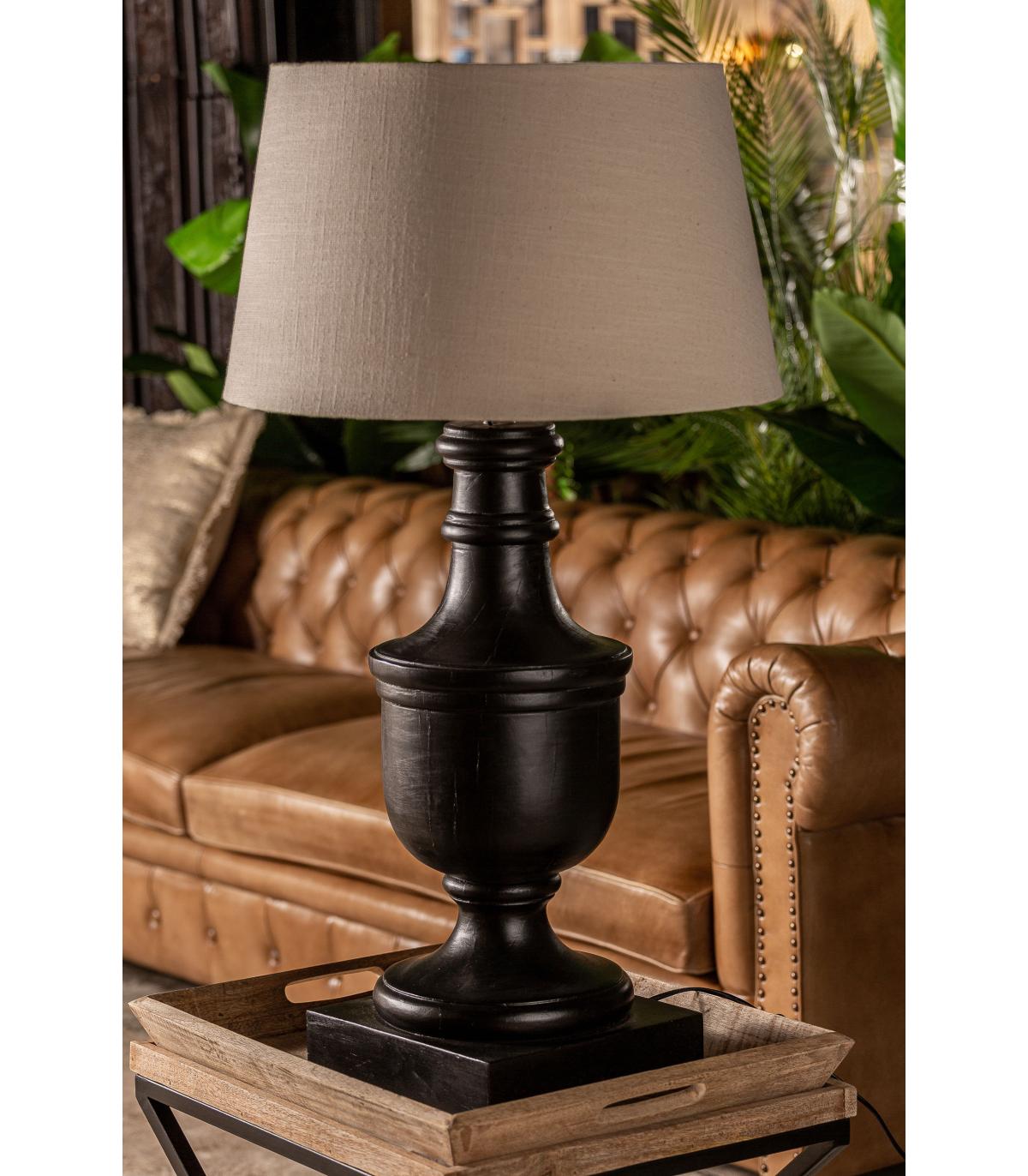 Lámpara de sobremesa de estilo provenzal fabricado en madera de mango en color negra combinado con algodón.