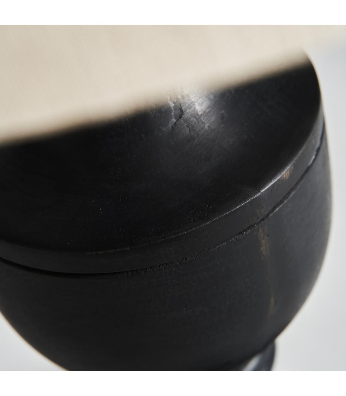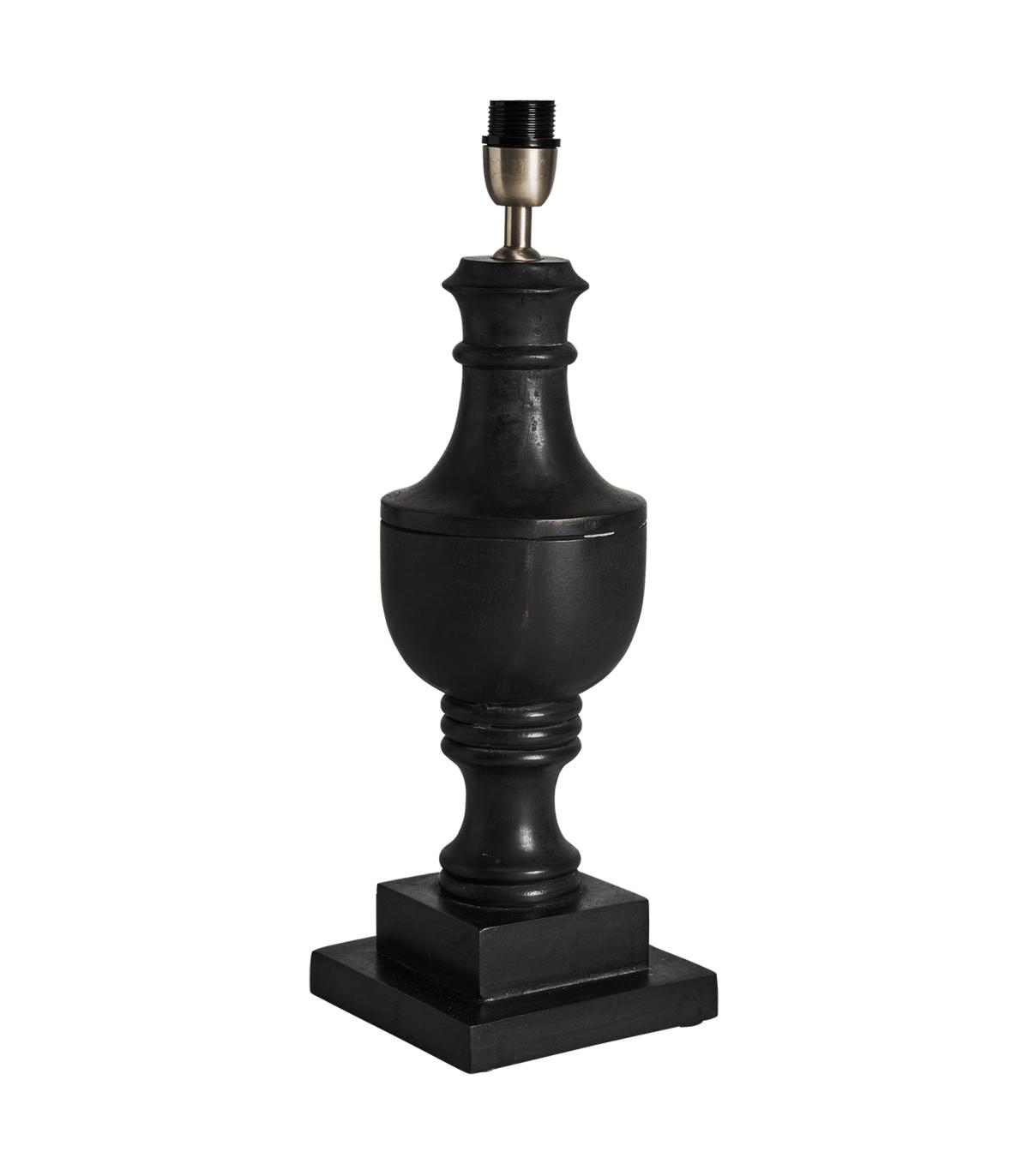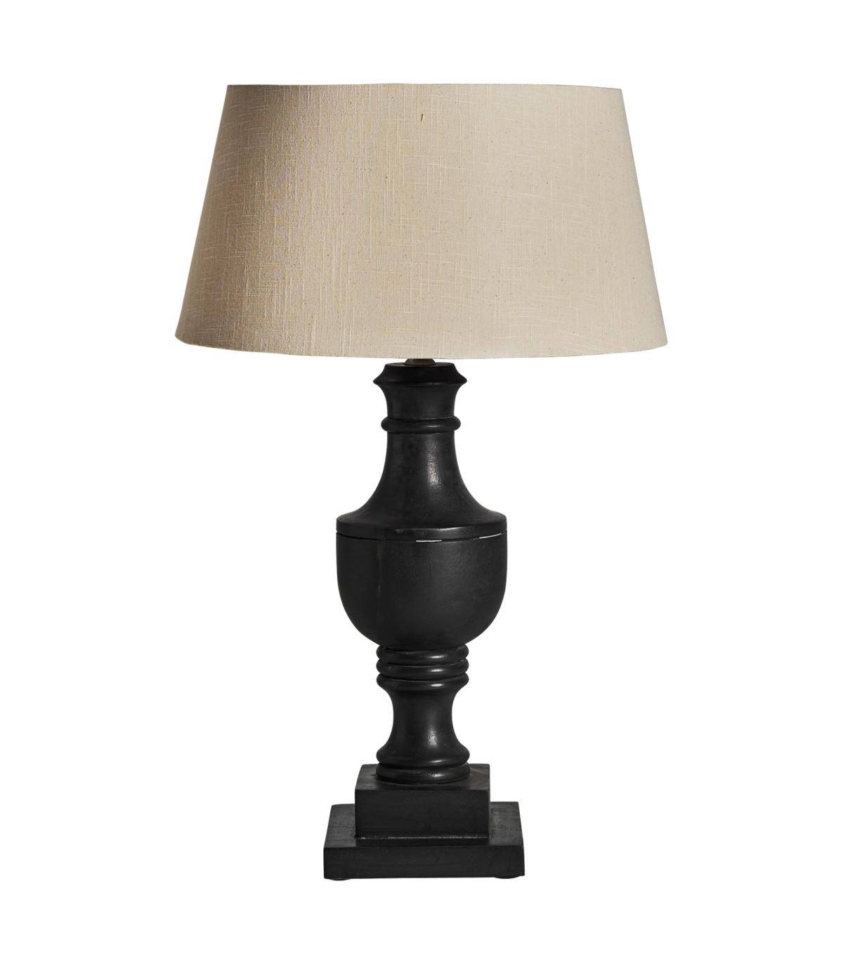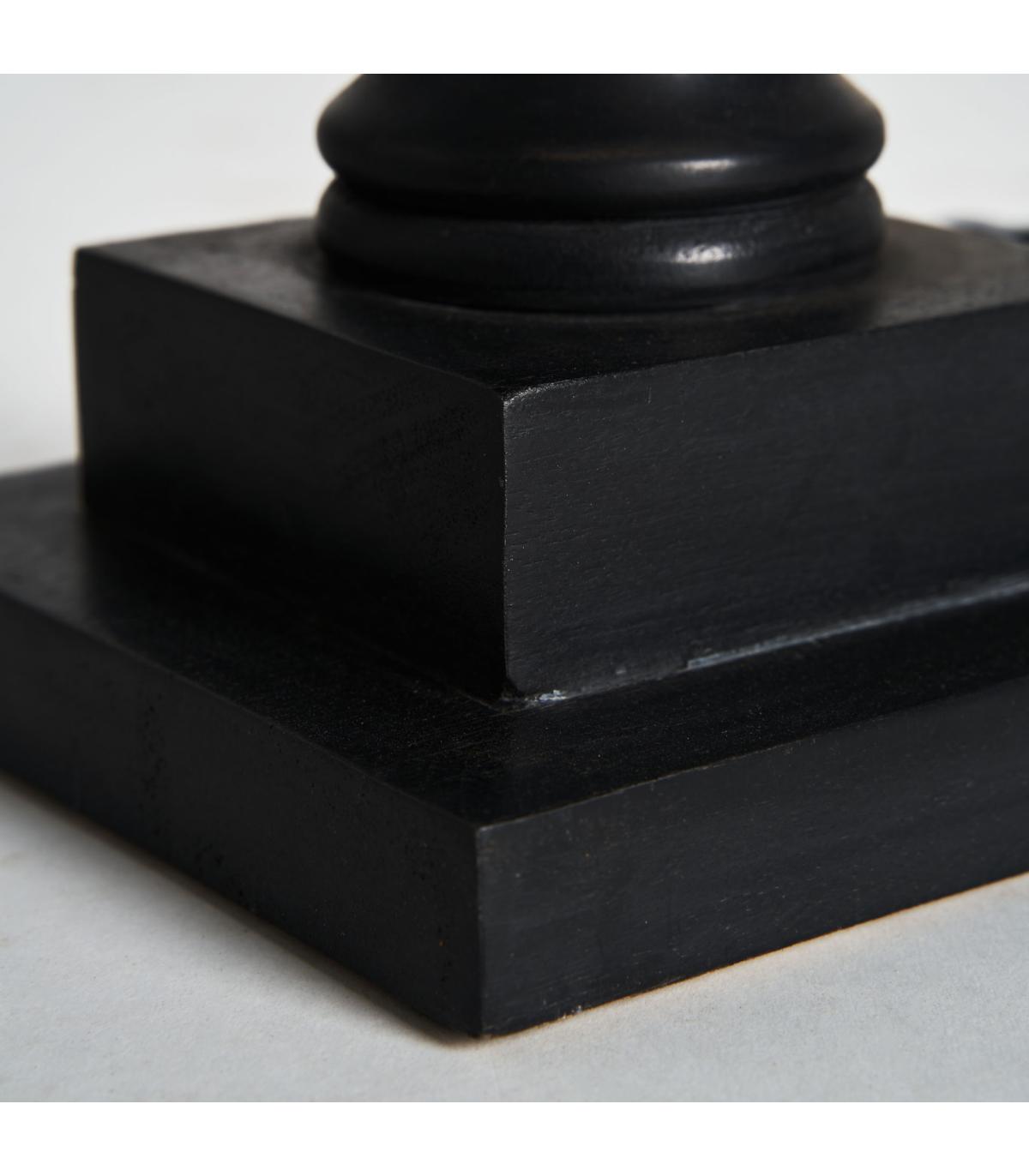 Lámpara de sobremesa de estilo provenzal fabricado en madera de mango en color negra combinado con algodón.