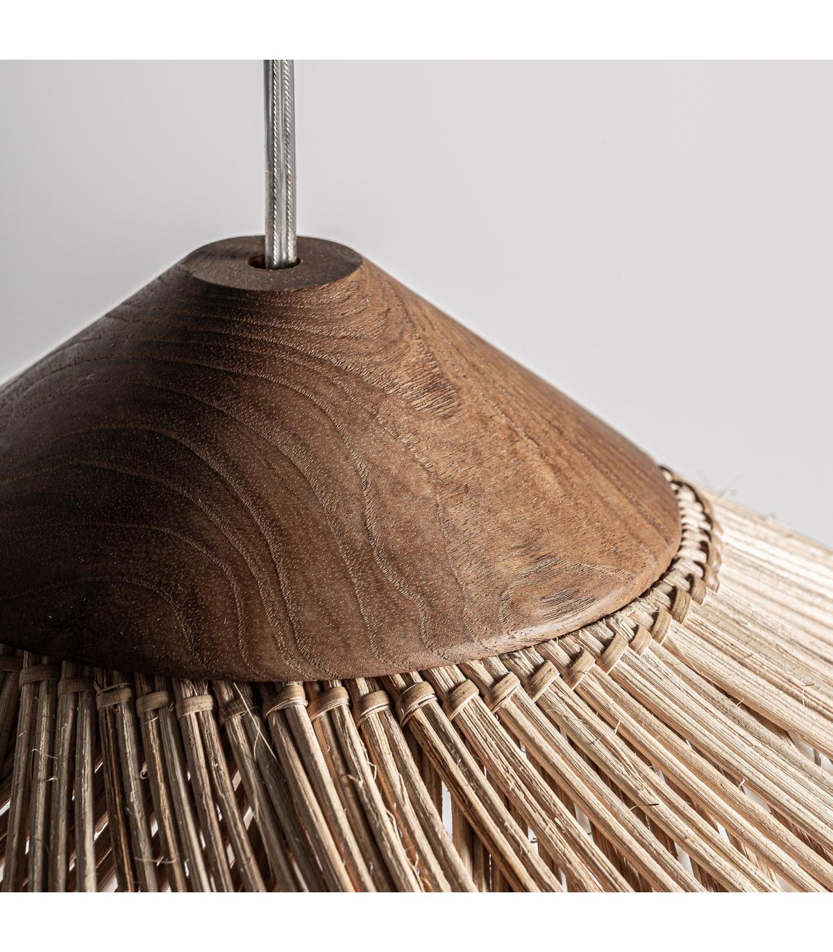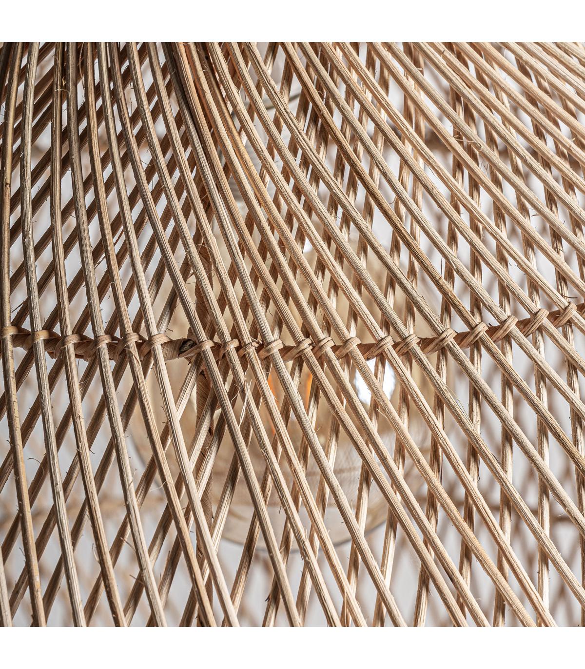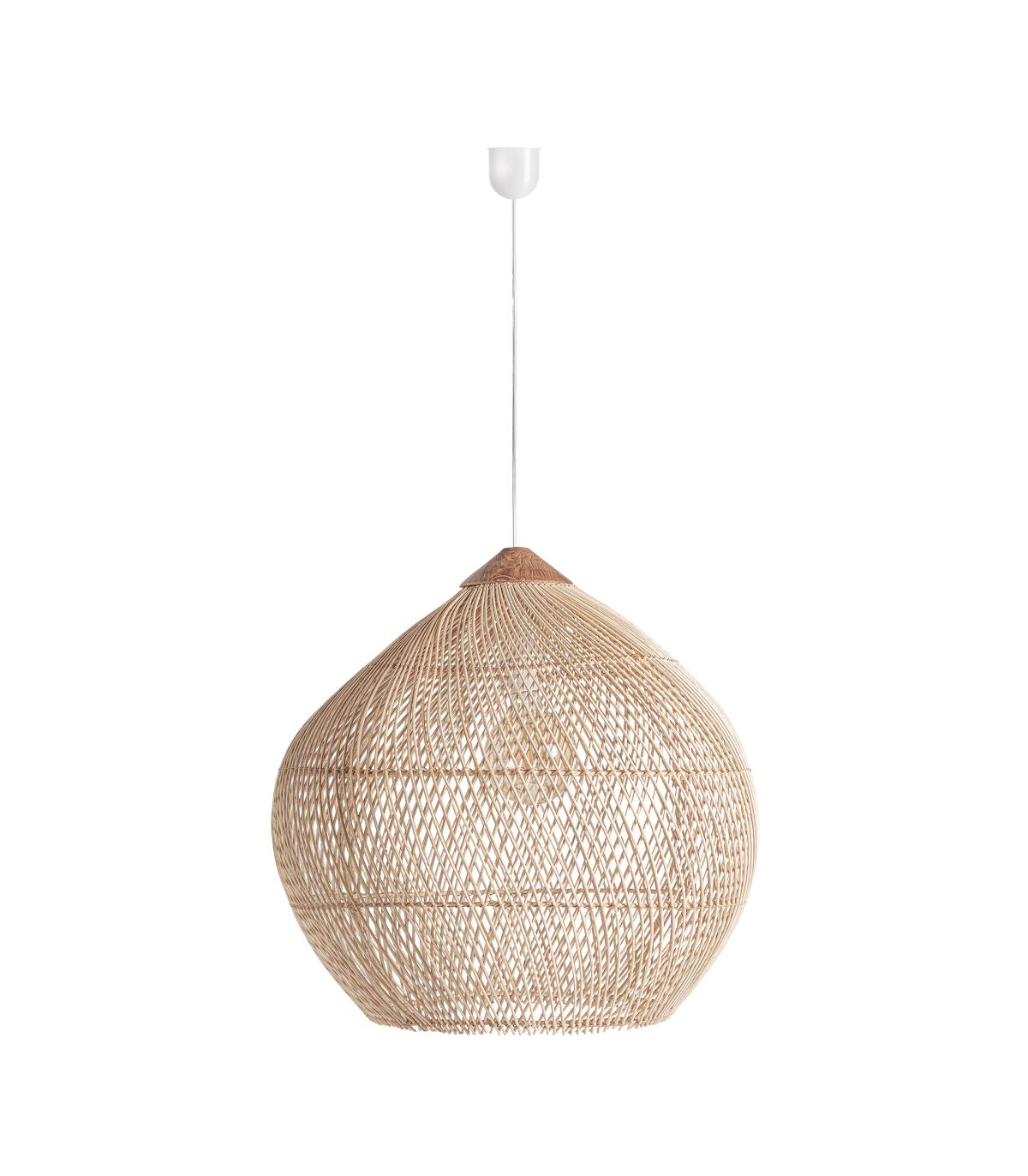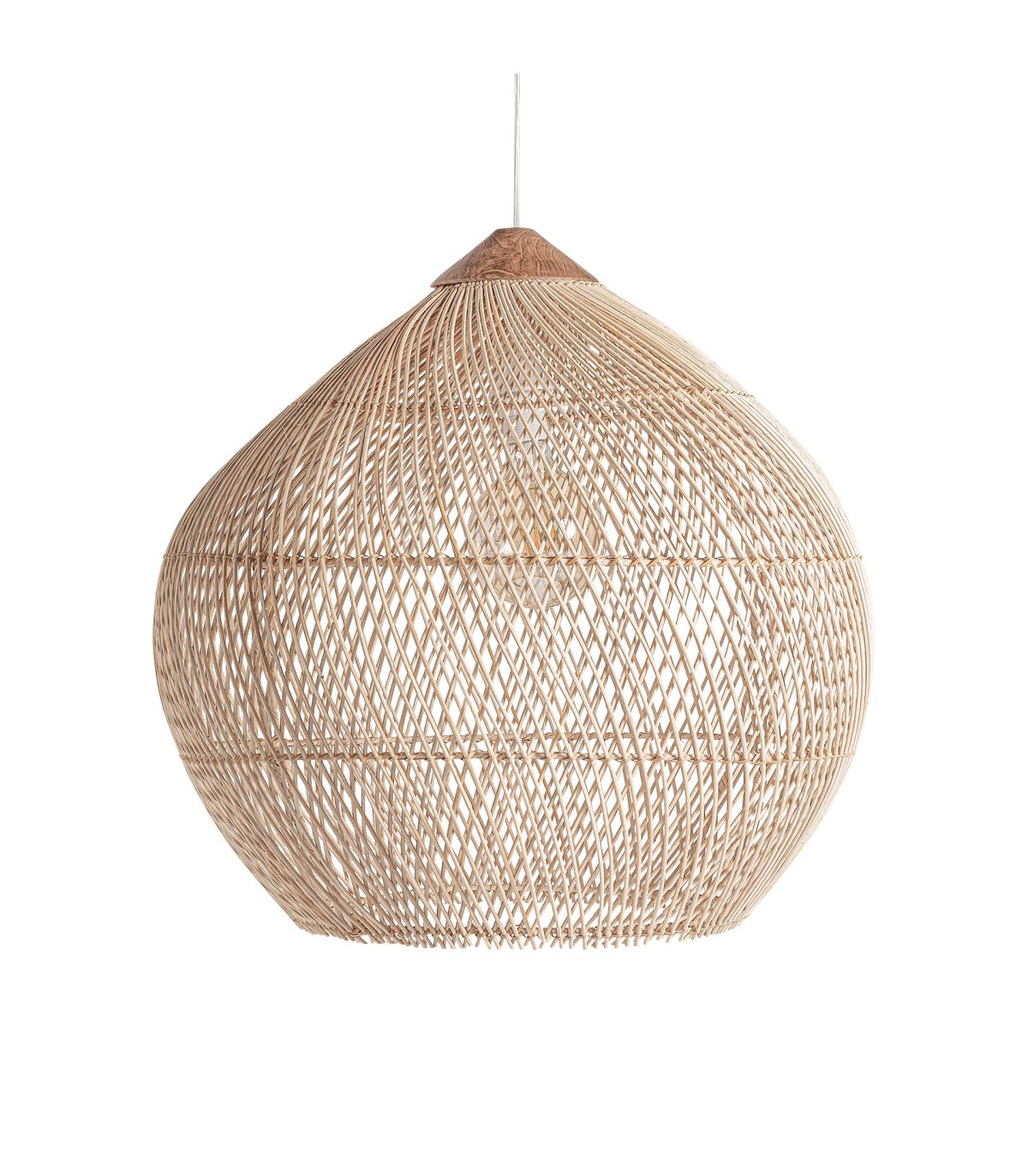 Lámpara de colgar de estilo boho fabricado en ratán en color marrón.