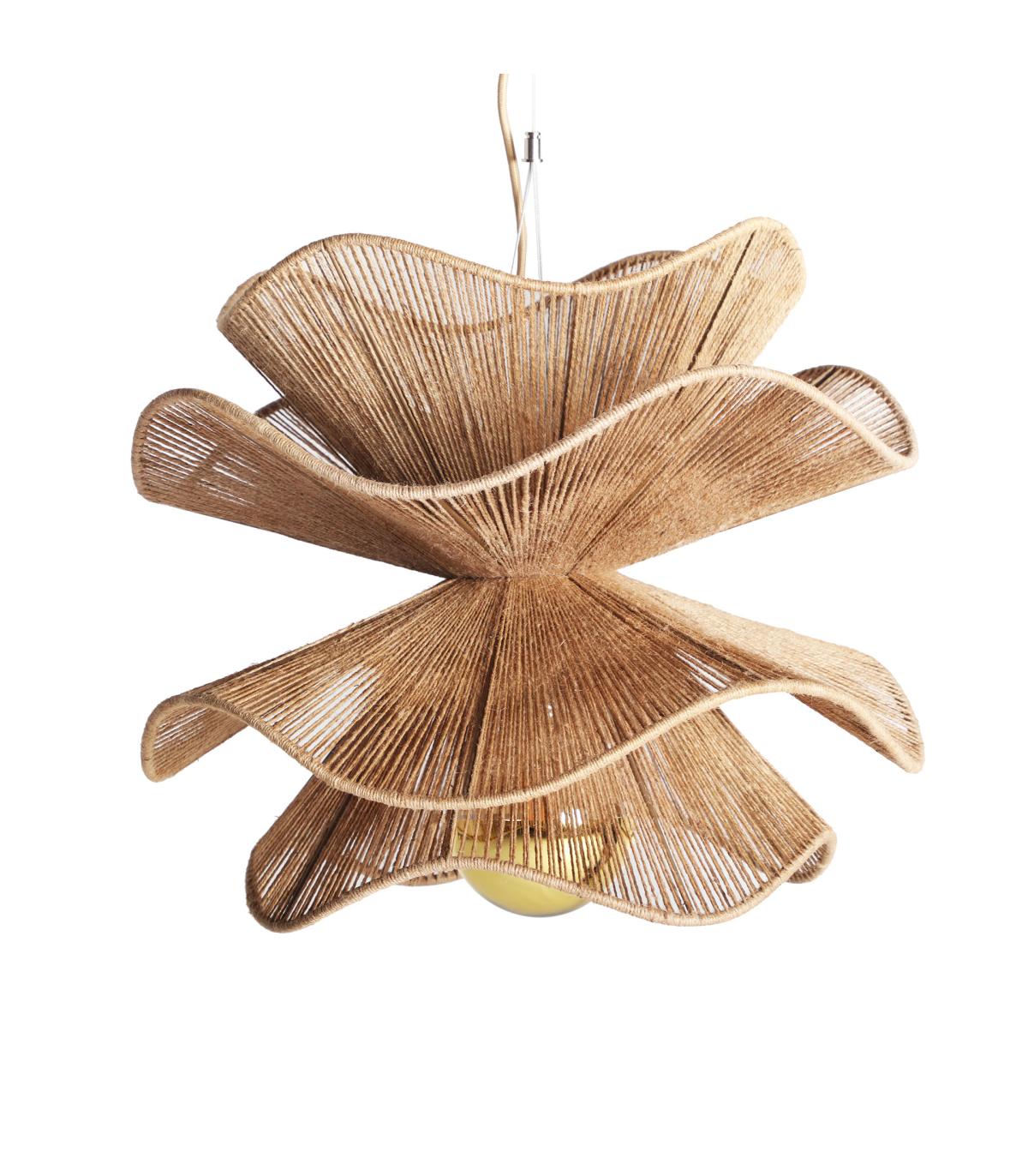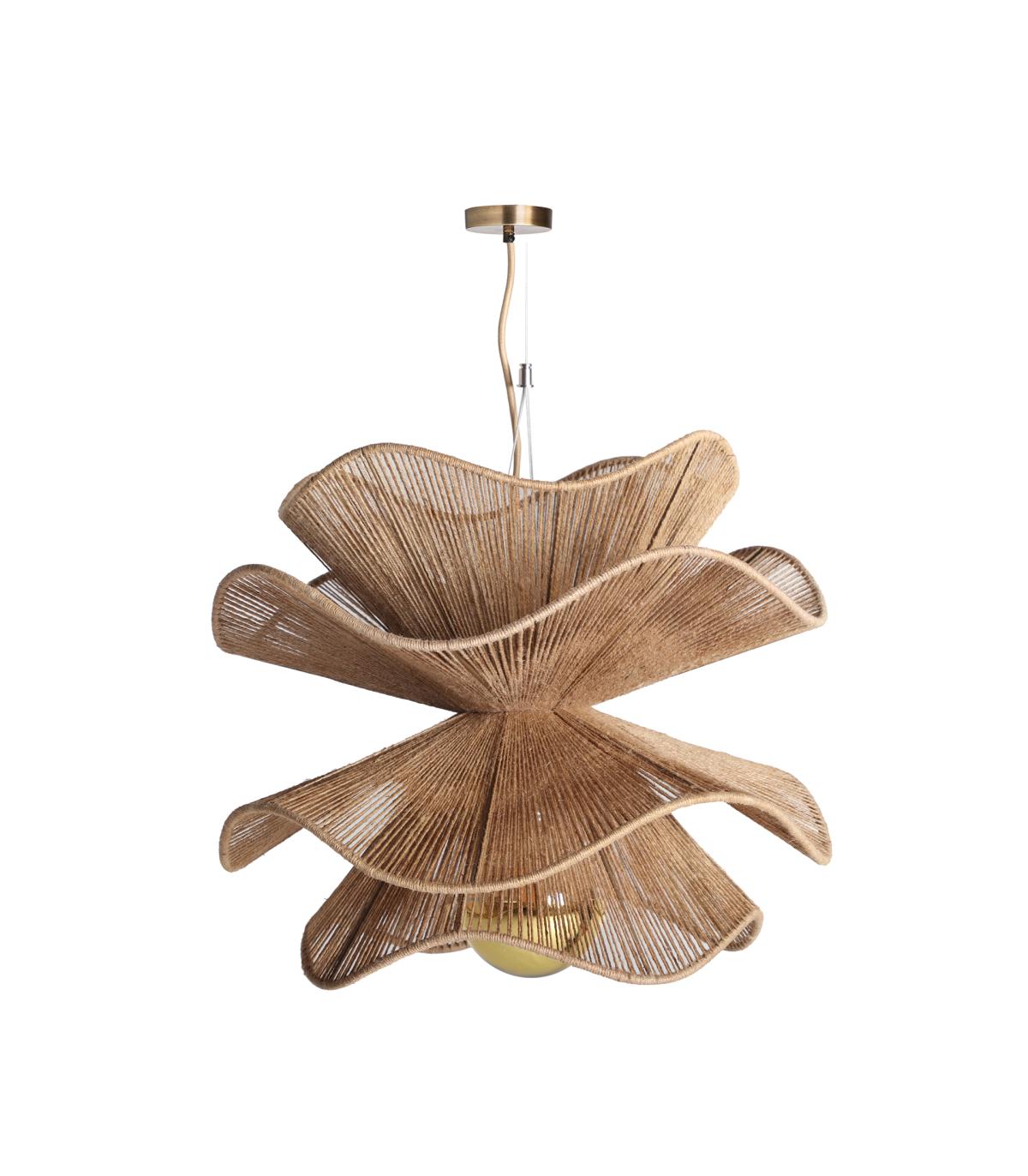 Lámpara de colgar khed de estilo boho, fabricado en yute en color marrón, combinado con hierro.