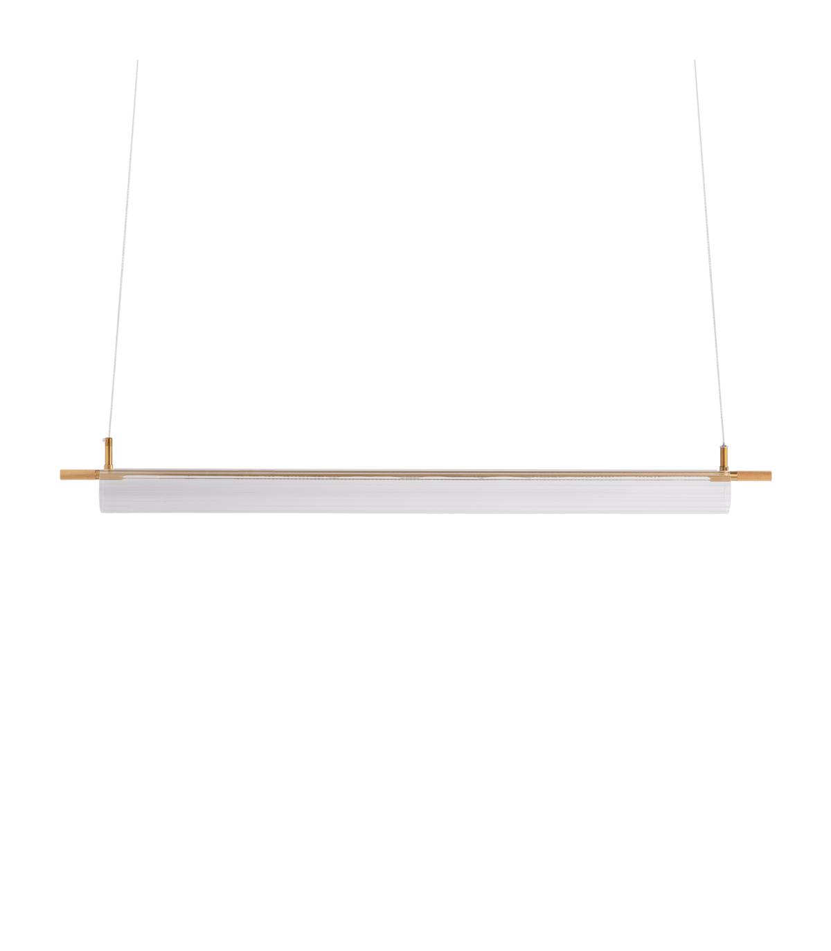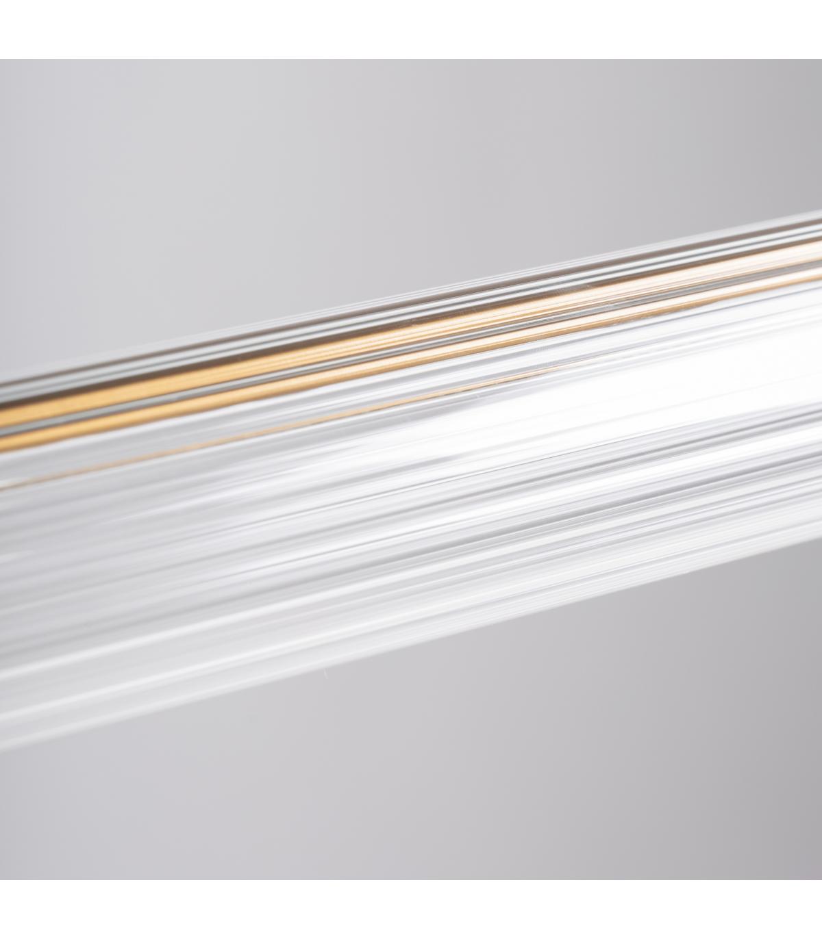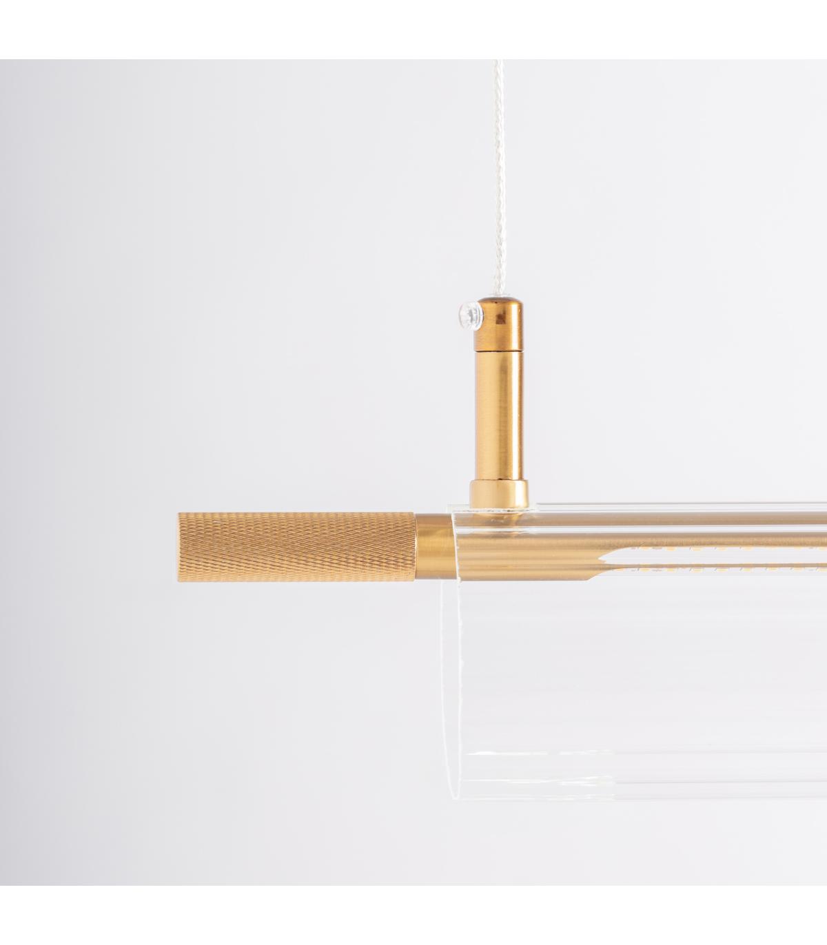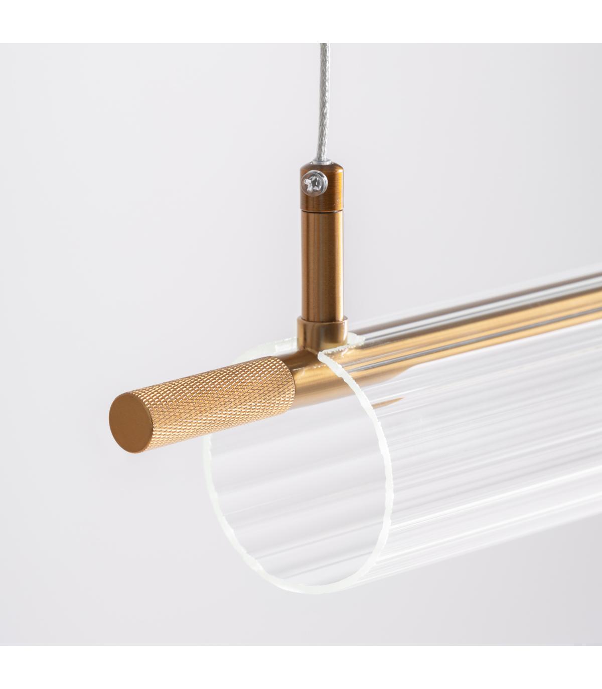 Lámpara de colgar fabricado en cristal en color transparente con acabado ahumado combinado con aluminio en color bronce.