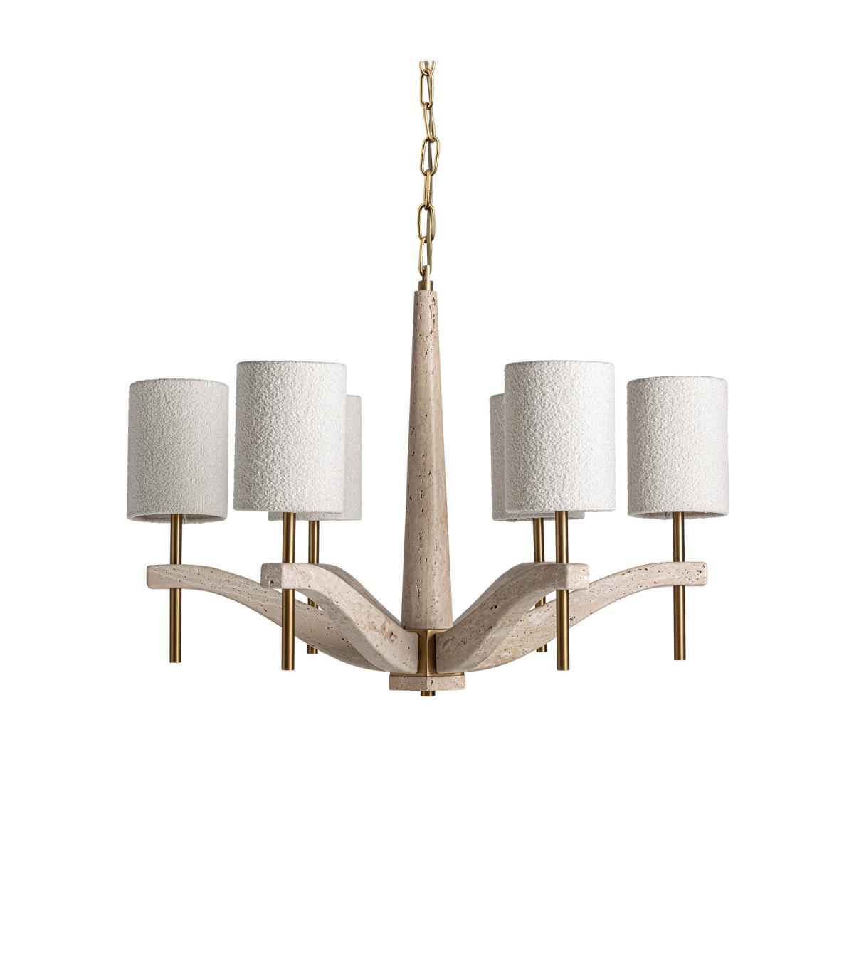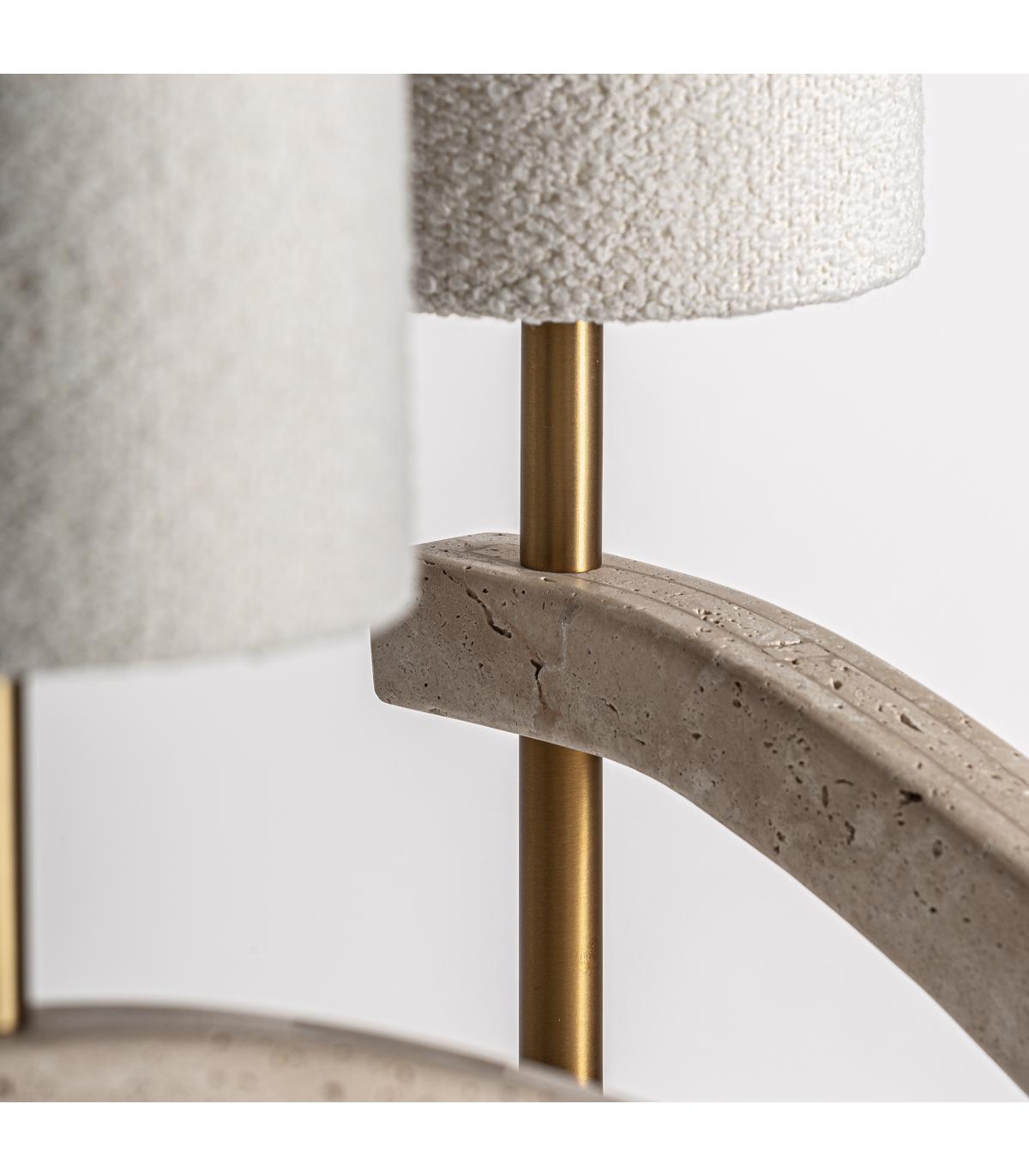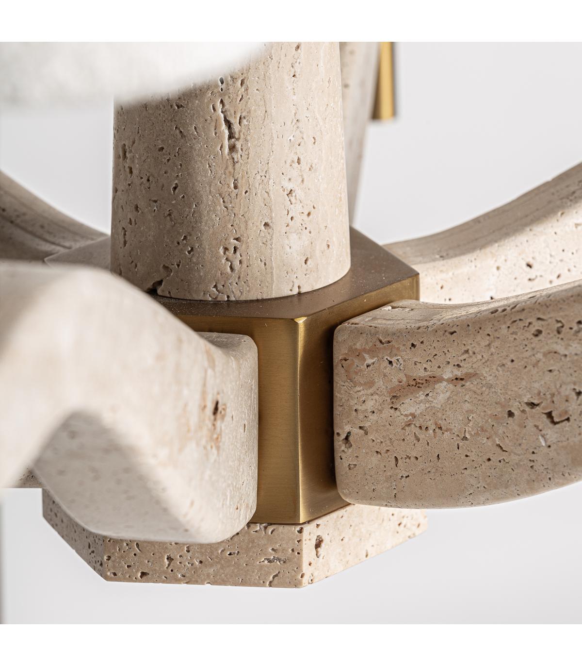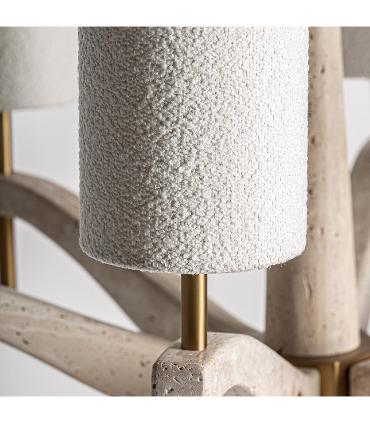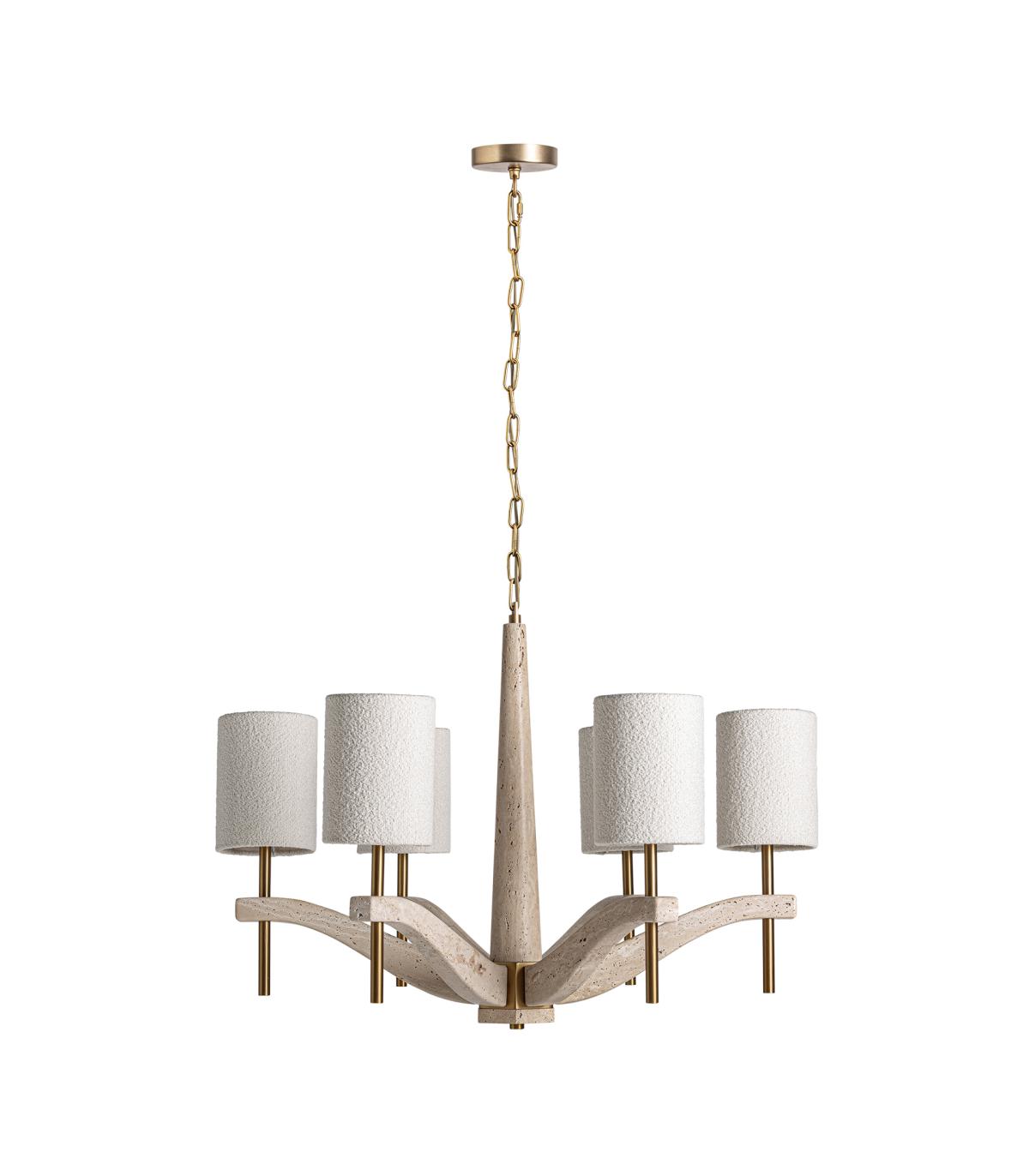 Lámpara de colgar fabricado en mármol en color beige combinado con metal en color dorado y poliéster en color blanco roto.