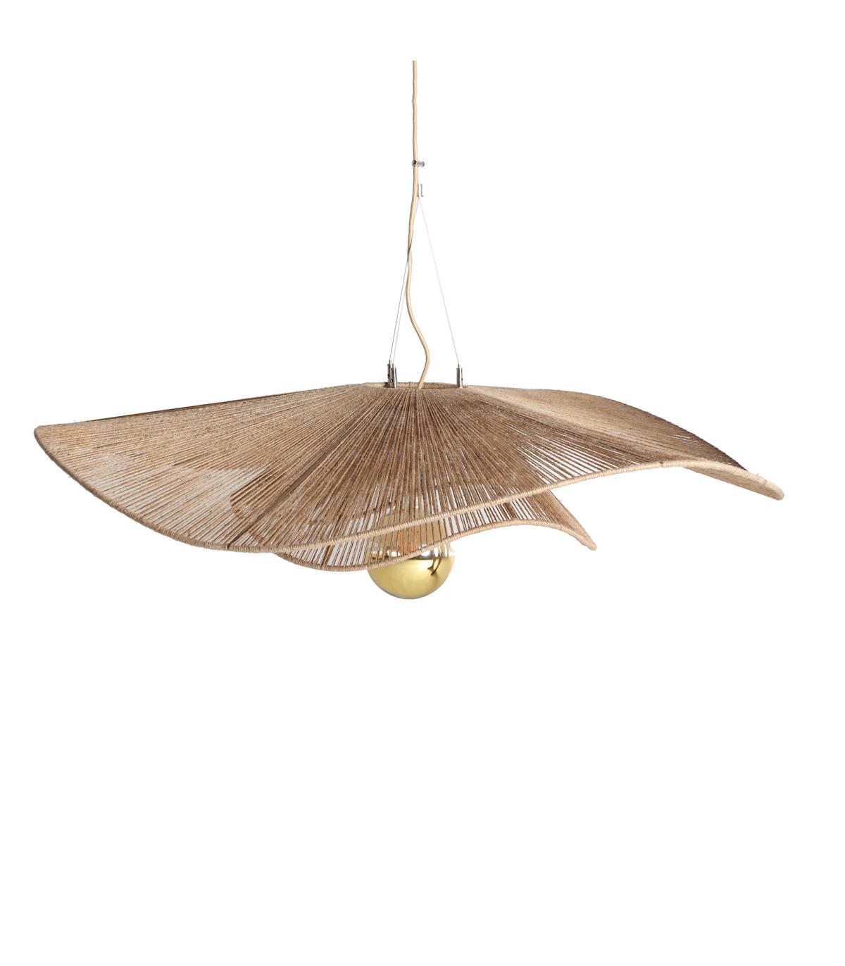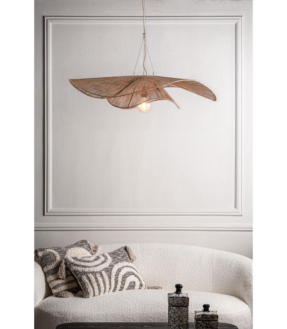 Lámpara de colgar khed de estilo boho, fabricado en yute en color marrón, combinado con hierro.