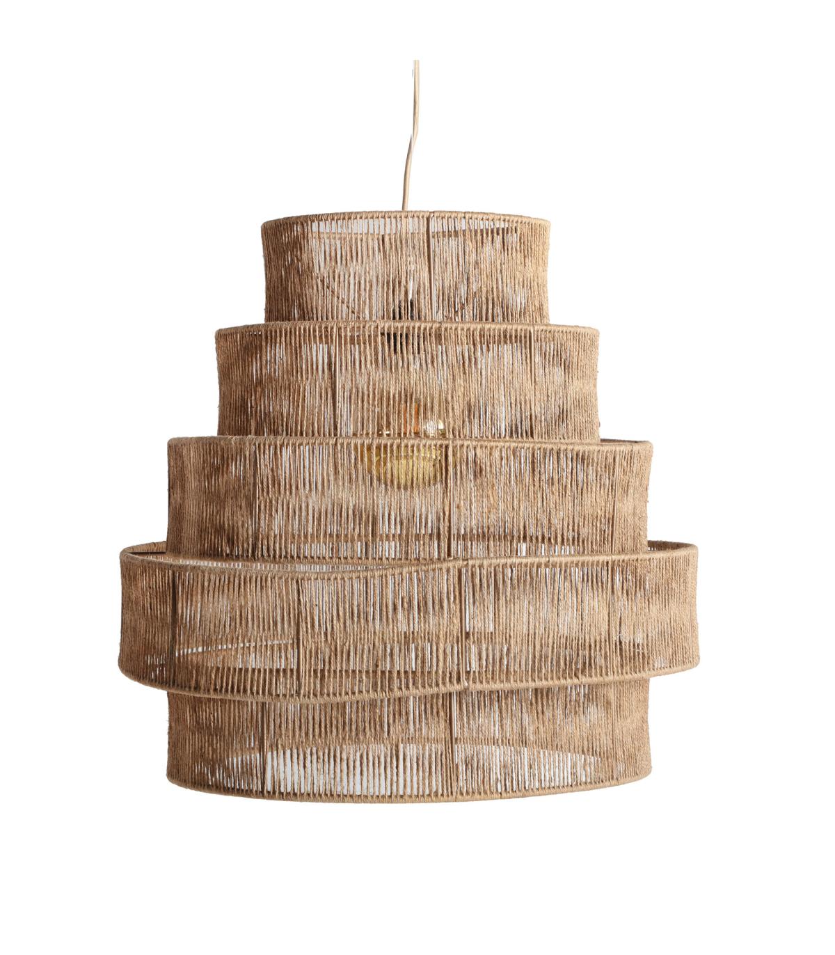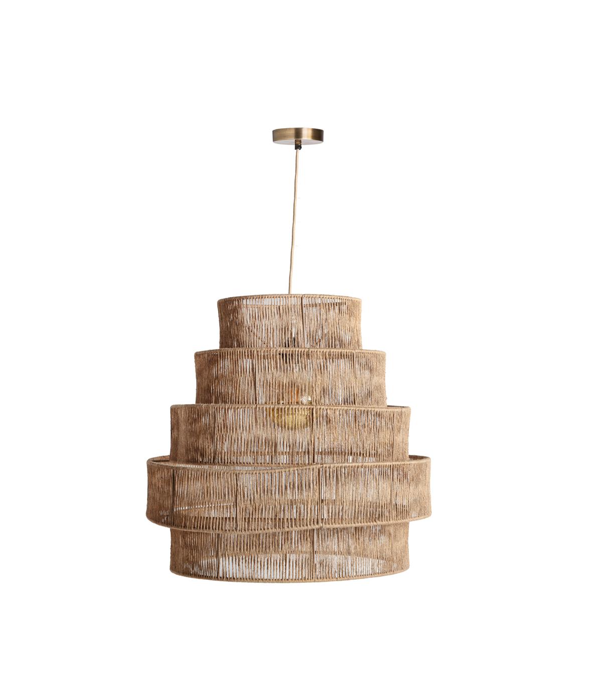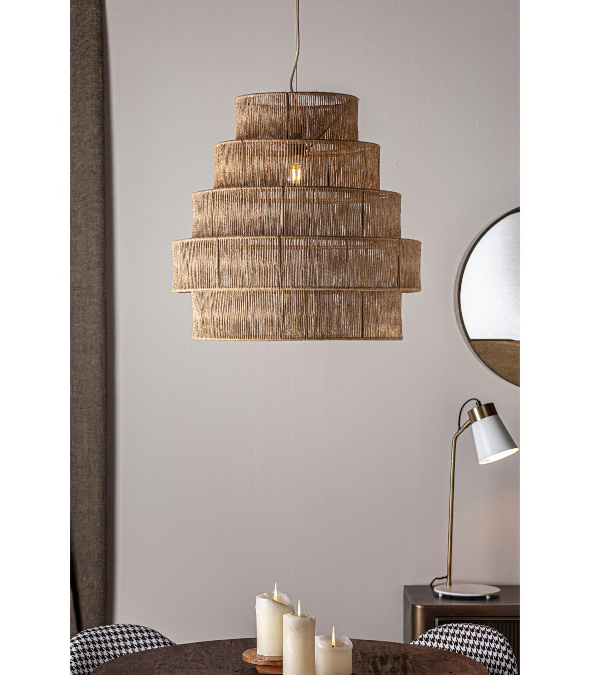 Lámpara de colgar khed de estilo boho, fabricado en yute en color marrón, combinado con hierro.