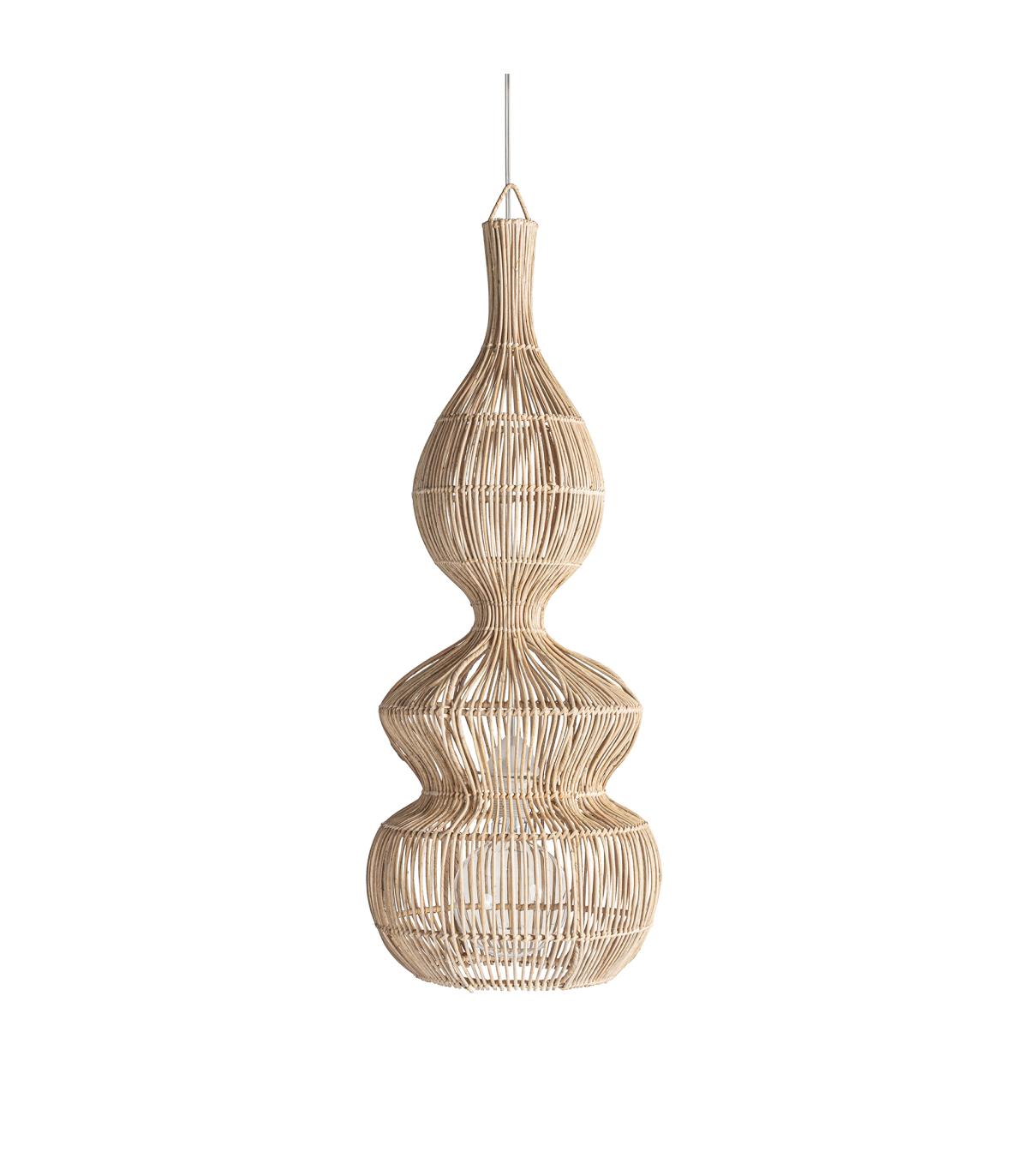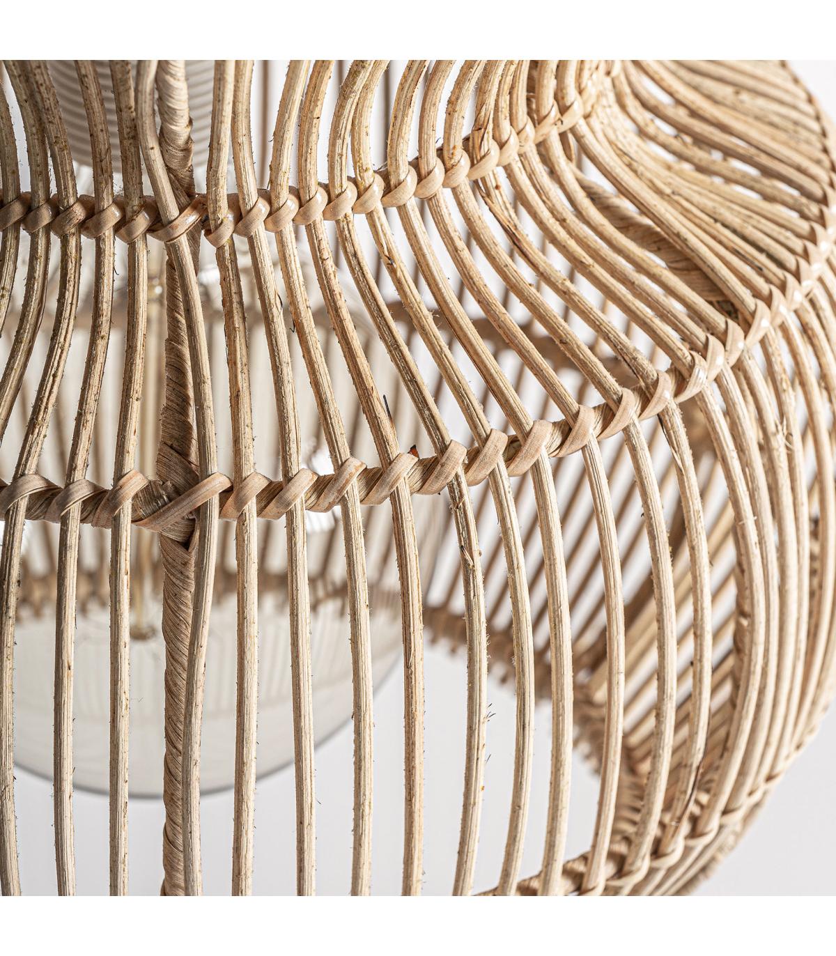 Lámpara de colgar de estilo boho fabricado en ratán en color marrón.