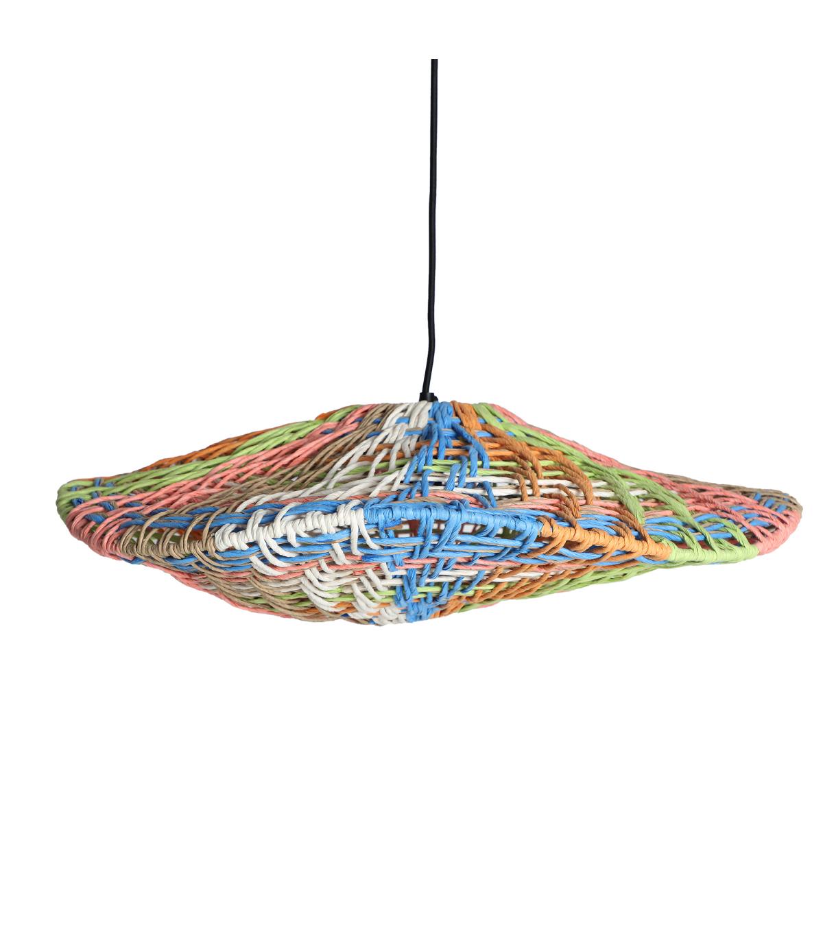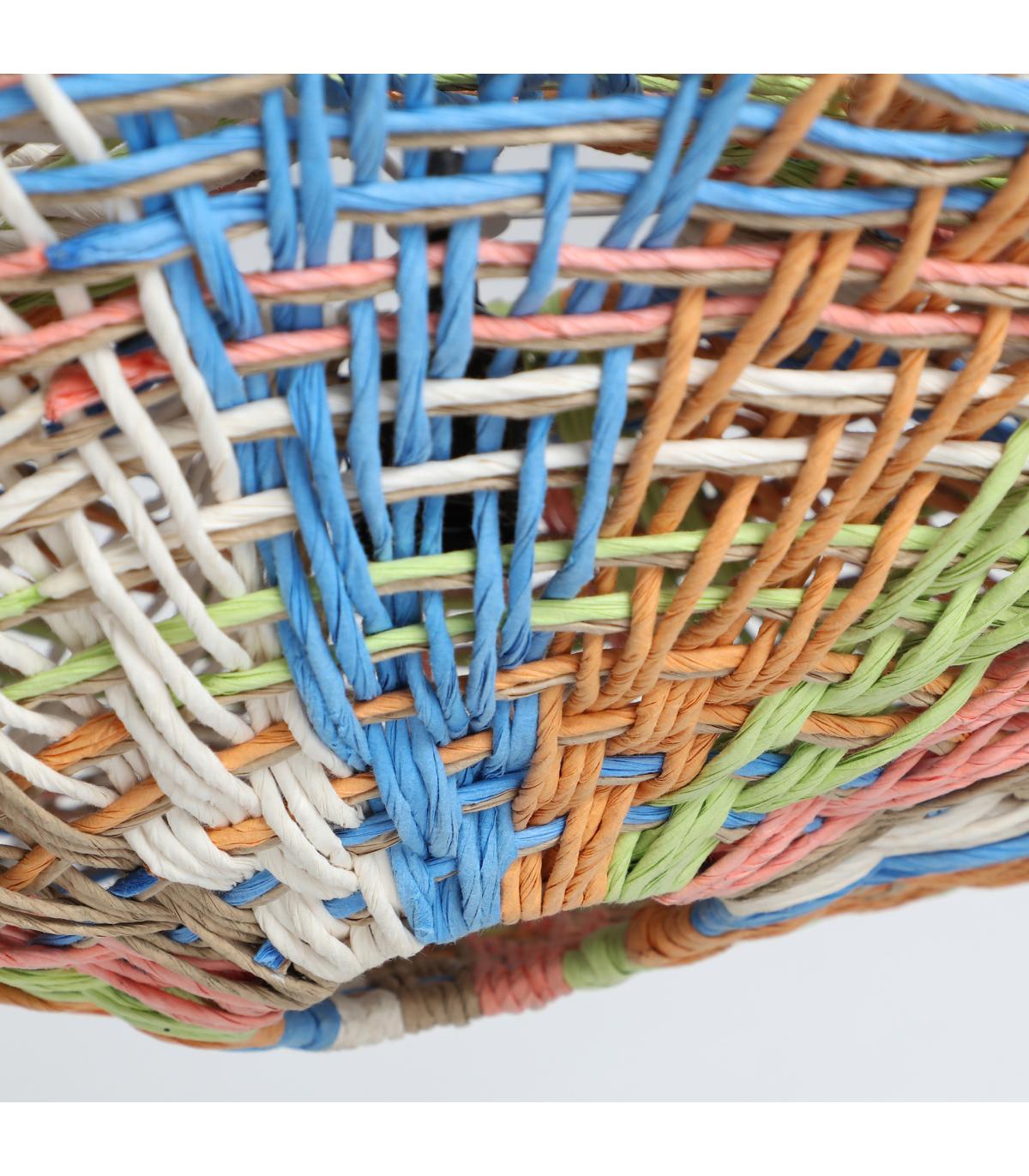 Lámpara de colgar Kalei de estilo boho, fabricado en rafia en color multicolor, combinado con hierro en color negro.