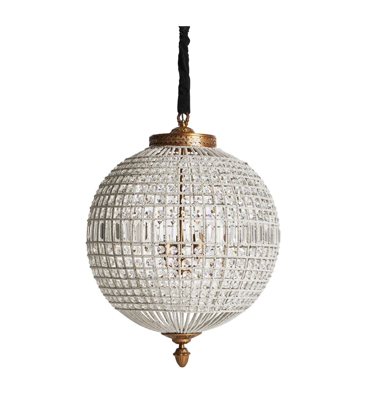 Lámpara de colgar en color transparente de estilo art deco. Fabricado en latón combinado con cristal y aluminio. Producto desmontable.