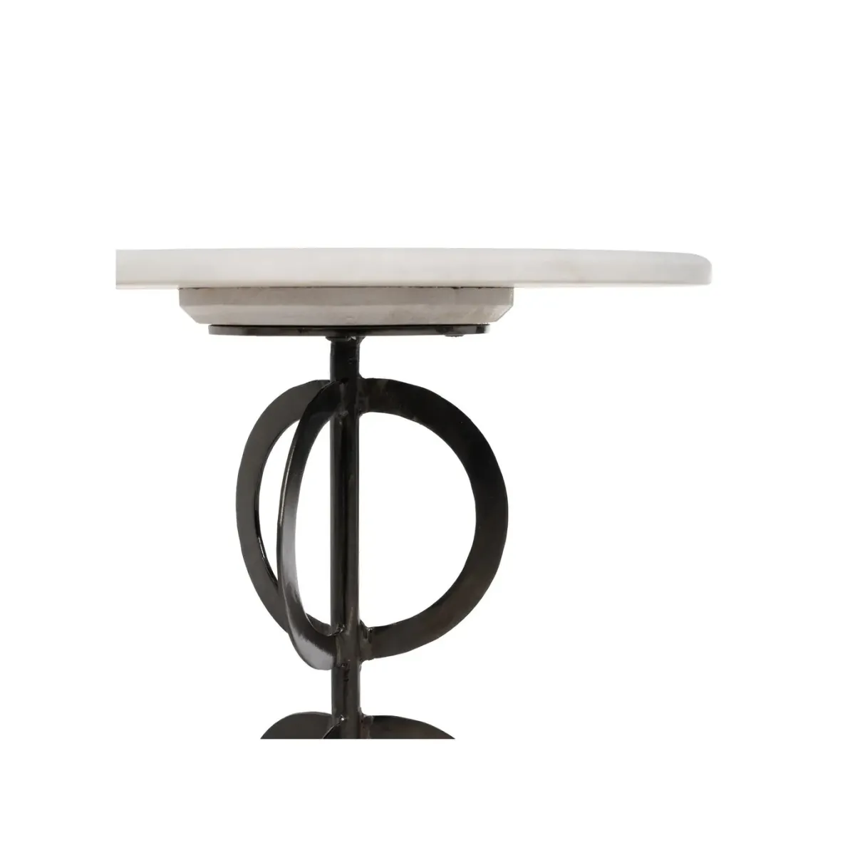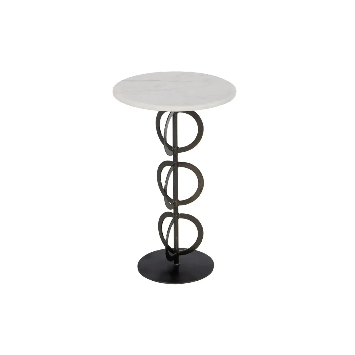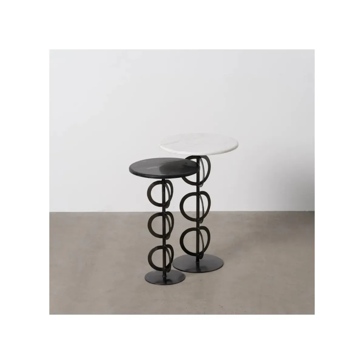 S/2 MESA AUXILIAR BLANCO-NEGRO 38 X 38 X 63 CM Material: mármol, hierro. Medidas: 38x38x63xm - 33x33x56cm. El mármol es un material natural que puede tener variaciones en su aspecto.