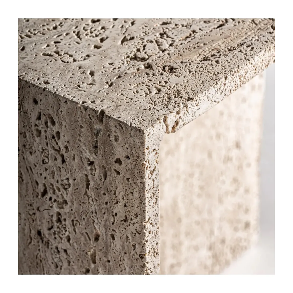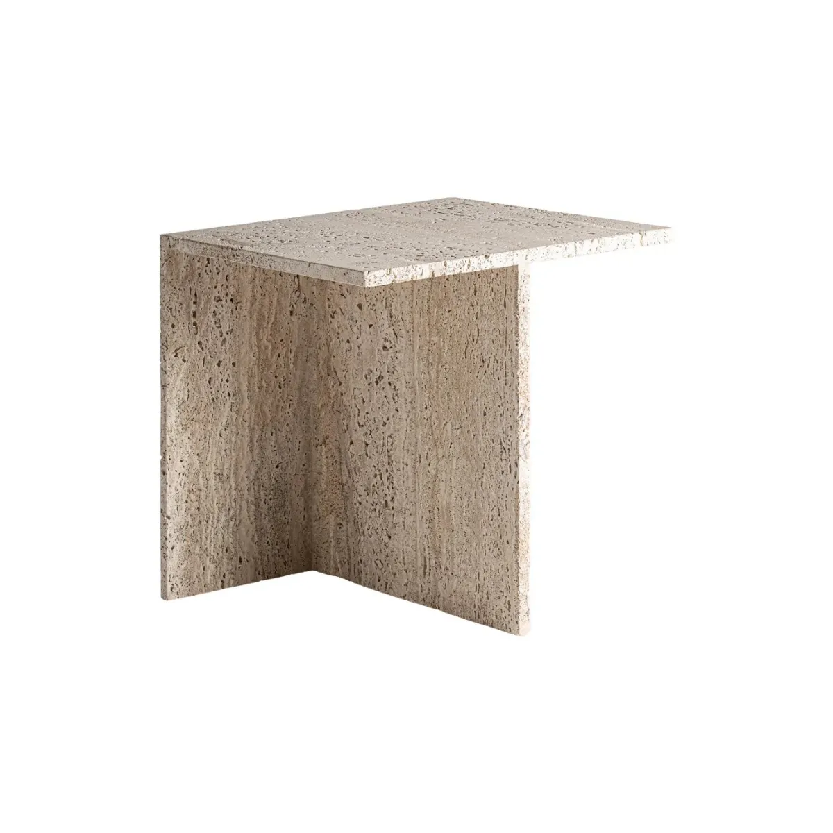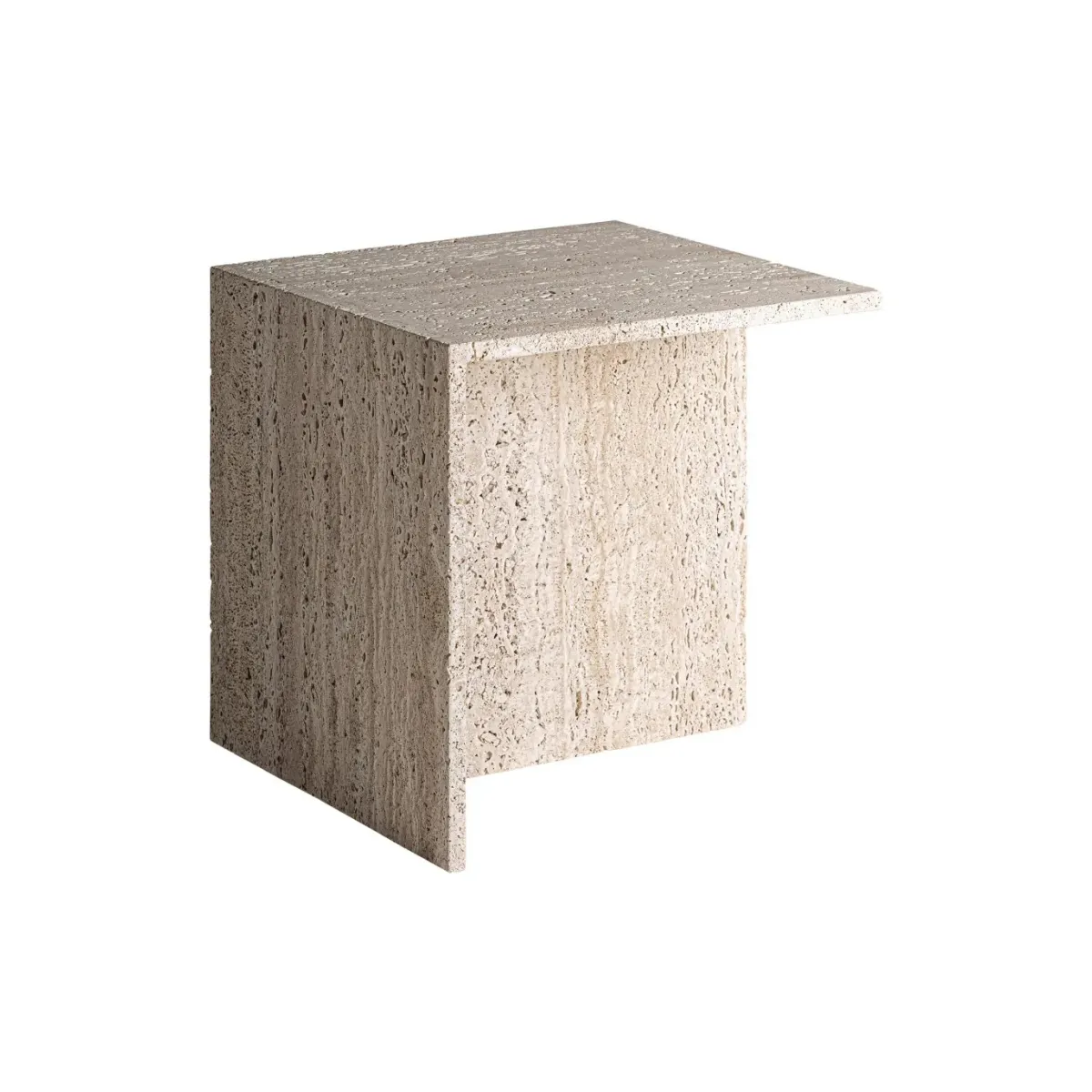 Mesa auxiliar theuville, en color beige, de estilo art deco. Fabricado en travertino.