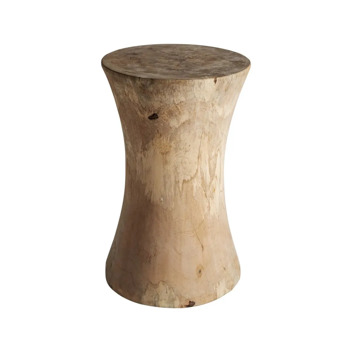 Taburete guelma, en color marrón natural, de estilo étnico. Fabricado en madera suar.