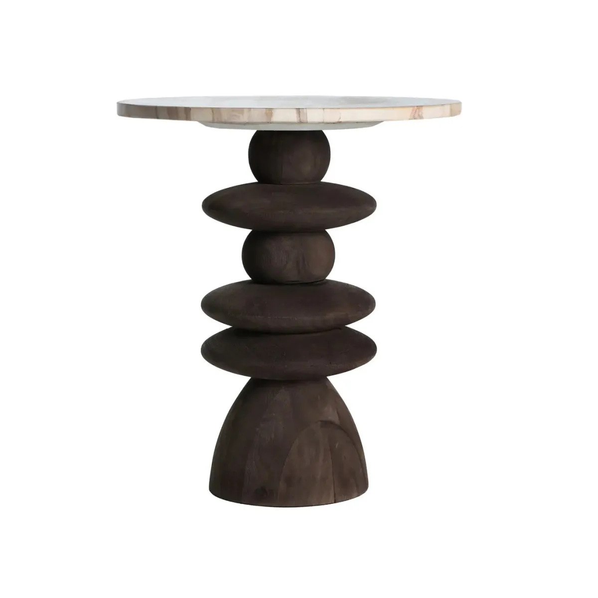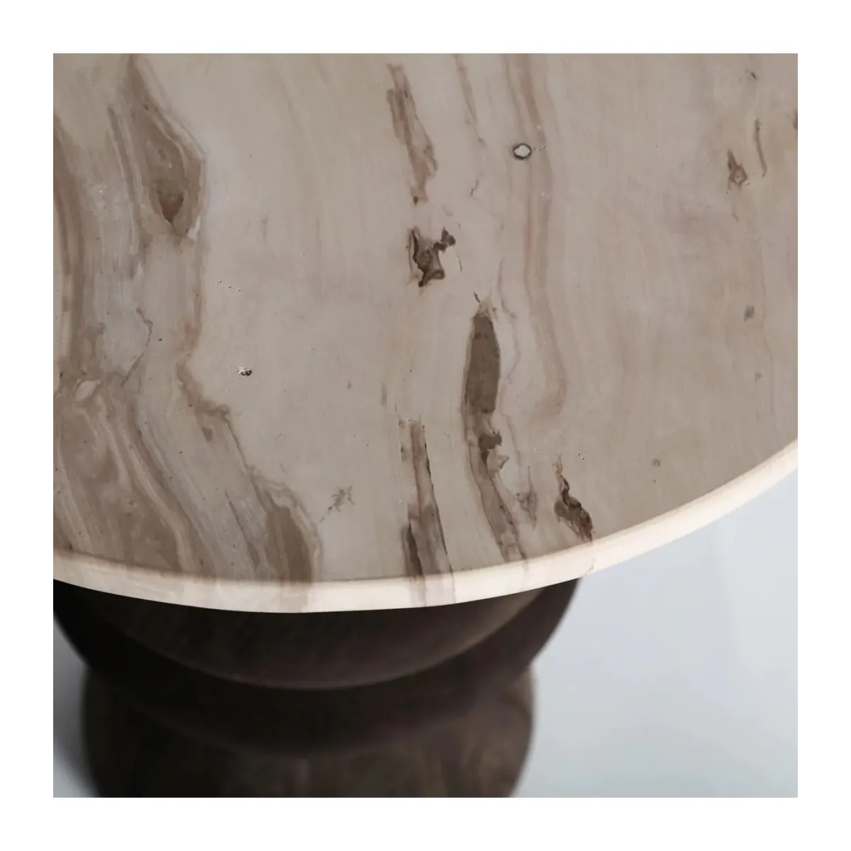 Mesa auxiliar redonda vrads, de estilo contemporáneo. Fabricado en madera de mango, en color marrón, combinado con mármol, en color tonos en marrón. Producto desenfundable.
