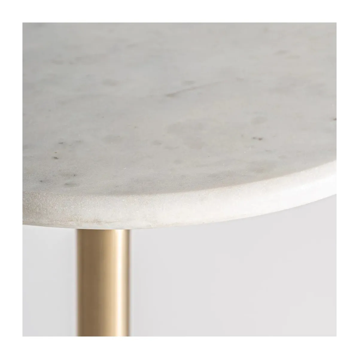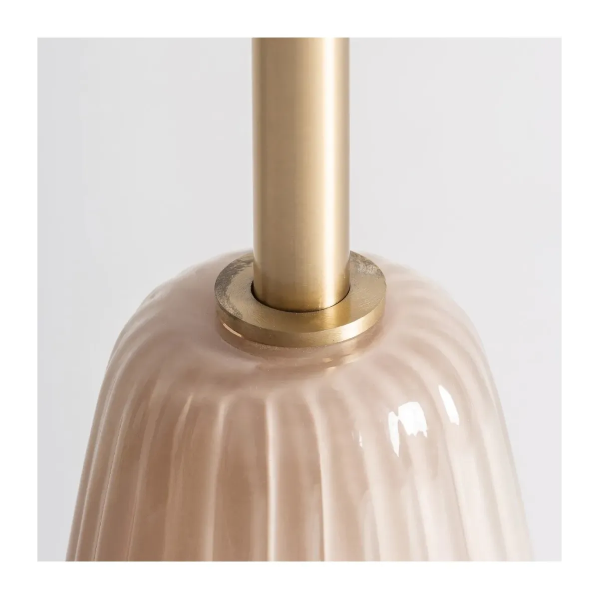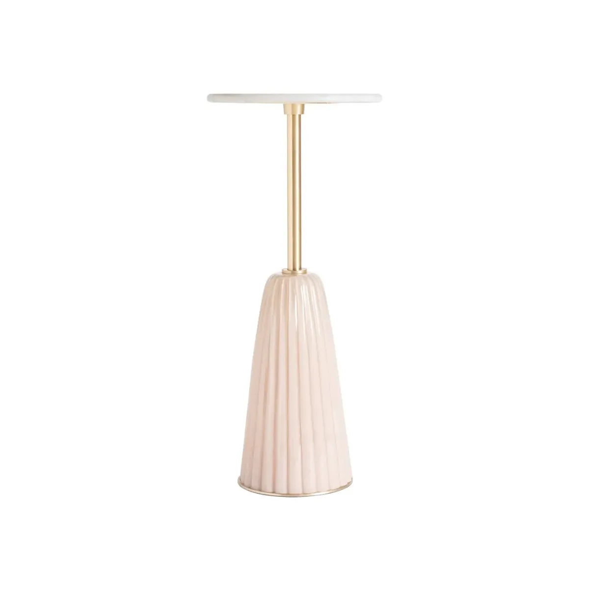 Mesa auxiliar Sintra de estilo art deco fabricado en vidrio en color rosa palo combinado con mármol en color blanco y acero en color oro.