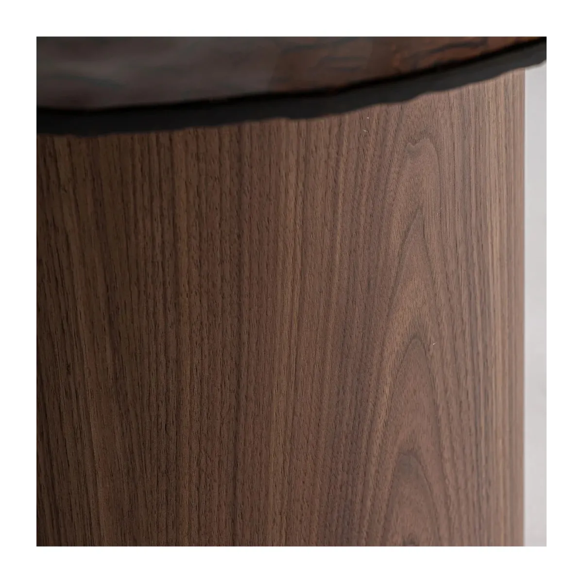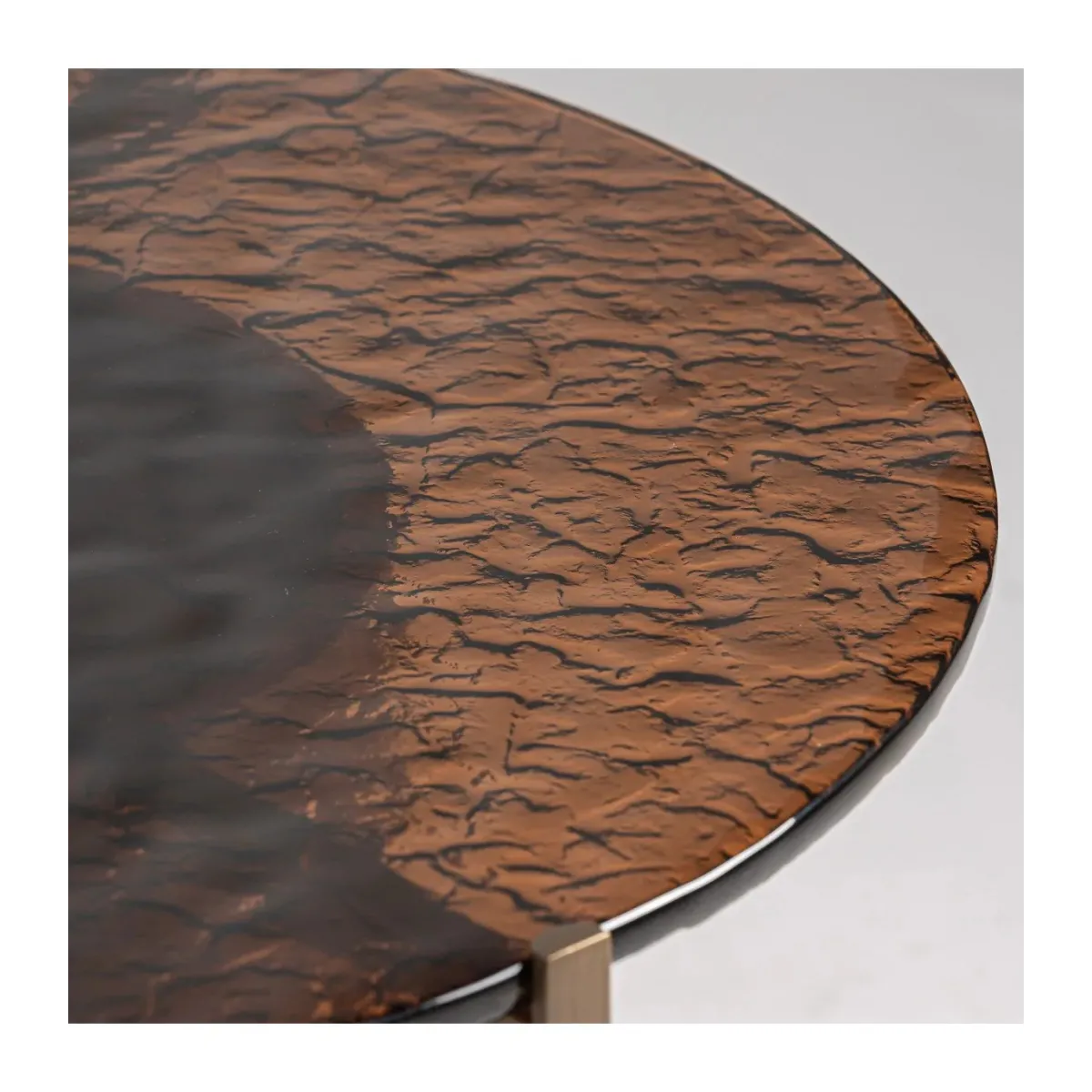 Mesa auxiliar giswil de estilo art deco. Fabricado en madera contrachapada en color marrón combinado con cristal en color marrón. Producto desmontable.