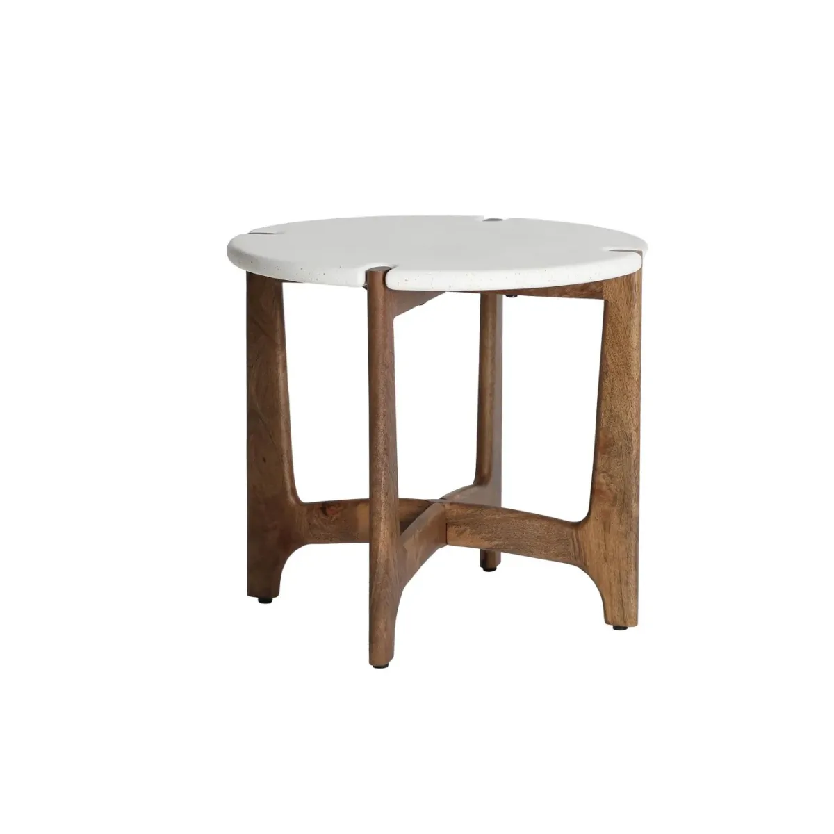 Mesa auxiliar, fabricado en madera de mango en color marrón, combinado con madera dm en color blanco.