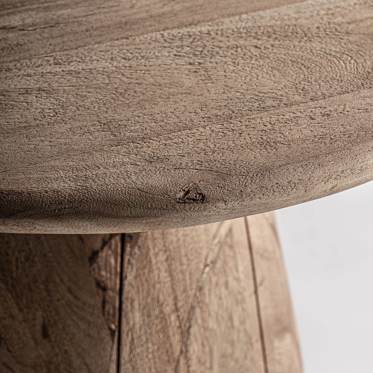 Mesa auxiliar jacquard de estilo contemporáneo. Fabricado en madera de mango en color marrón claro.