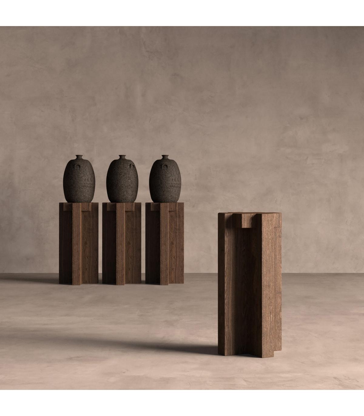 Peana Brutalist de estilo contemporáneo fabricado en madera recuperada en color marrón con acabado natural.