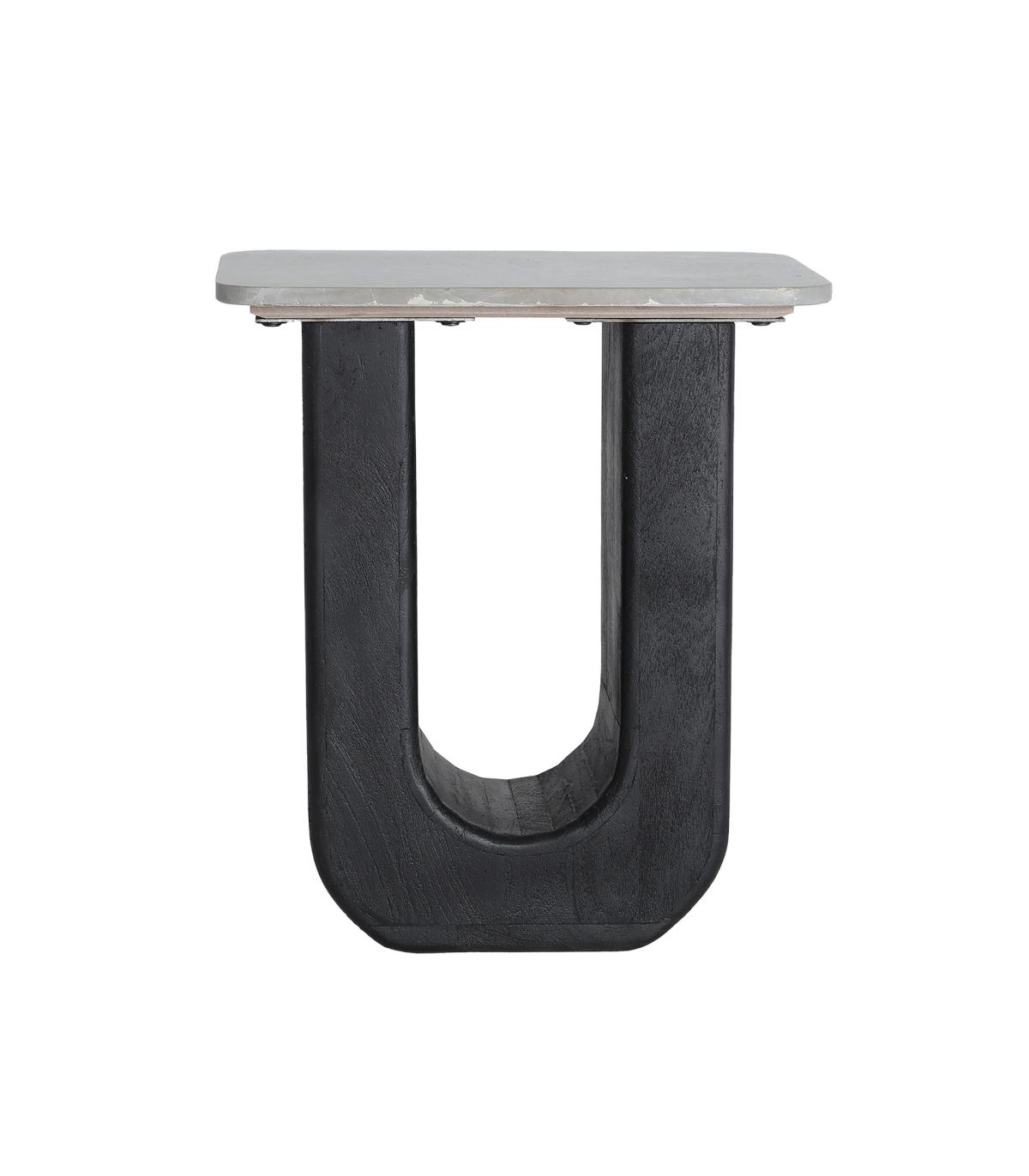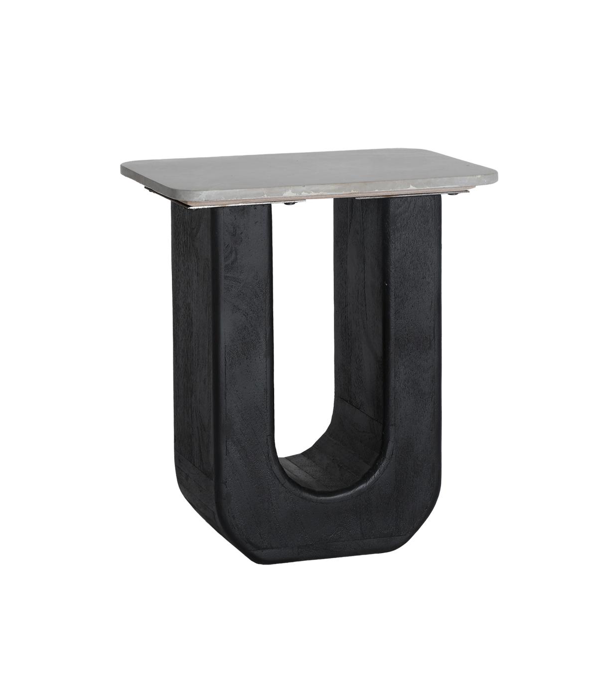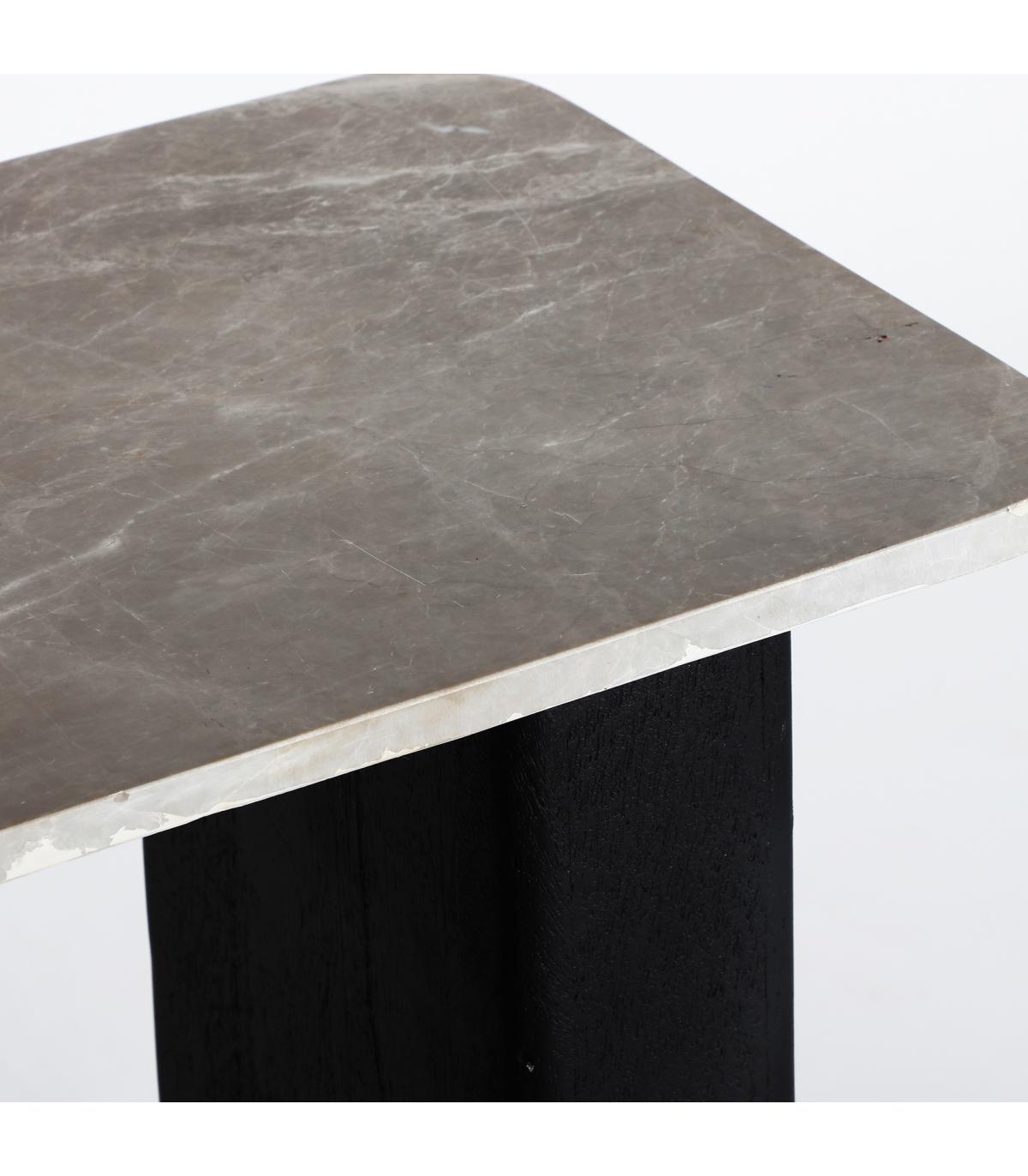 Mesa auxiliar Khej de estilo contemporáneo, fabricado en madera de mango en color negro, combinado con mármol en color marrón. Producto desmontable.