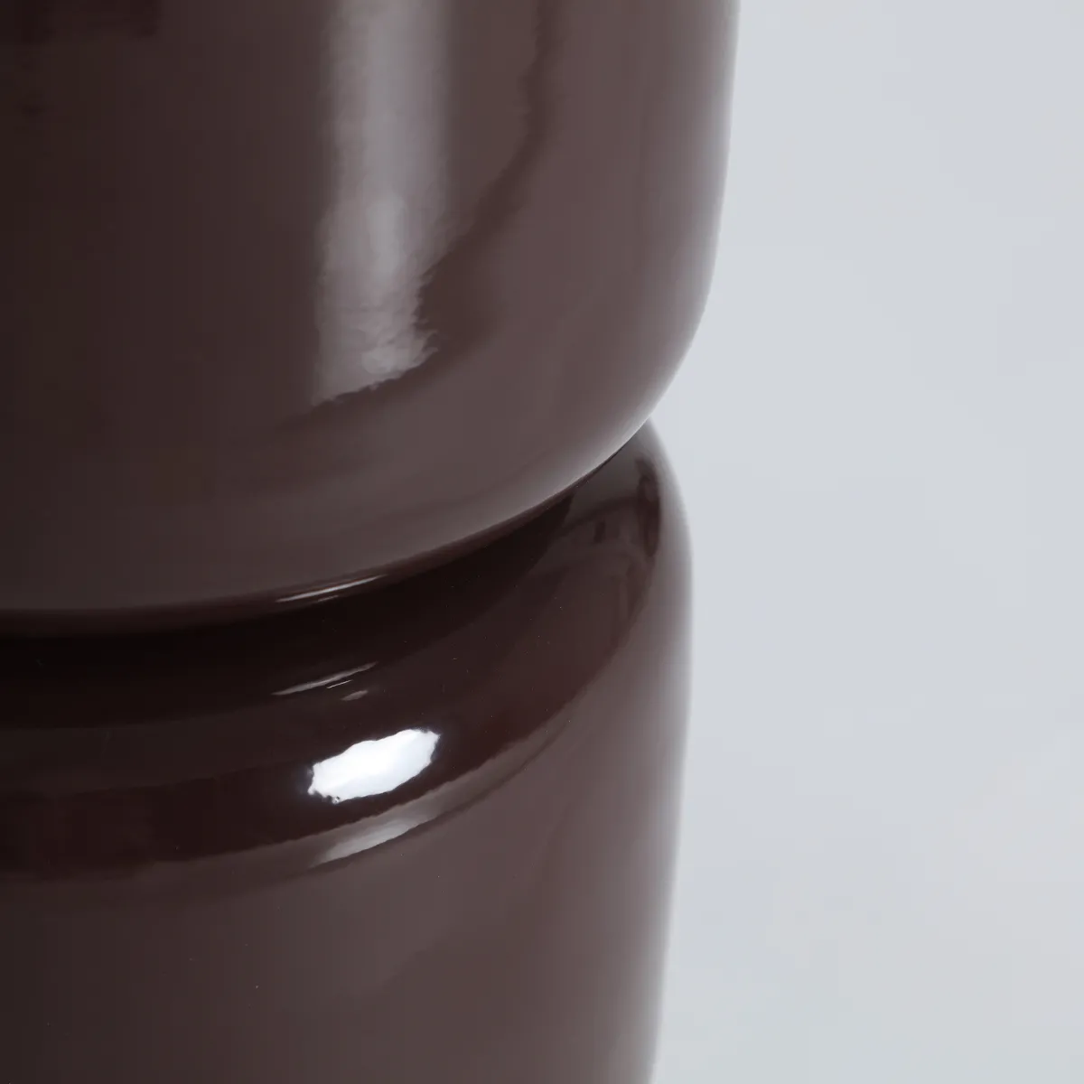 Mesa auxiliar Moka de estilo contemporáneo, fabricado en hierro en color chocolate con acabado brillo.