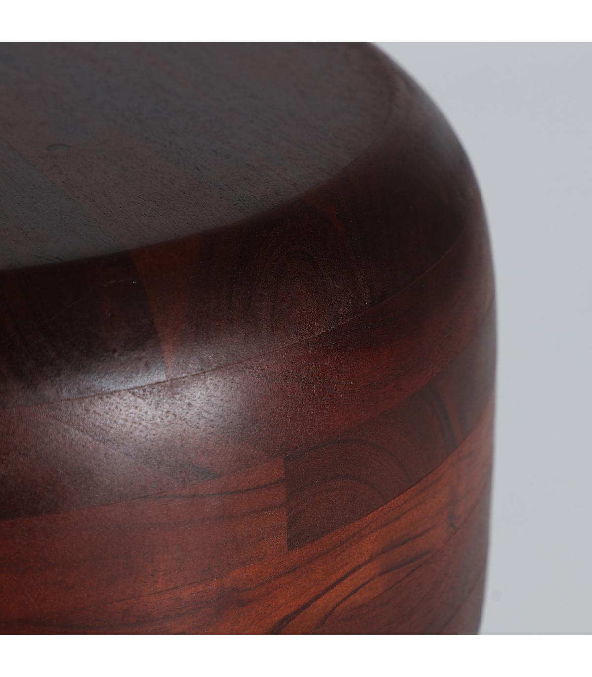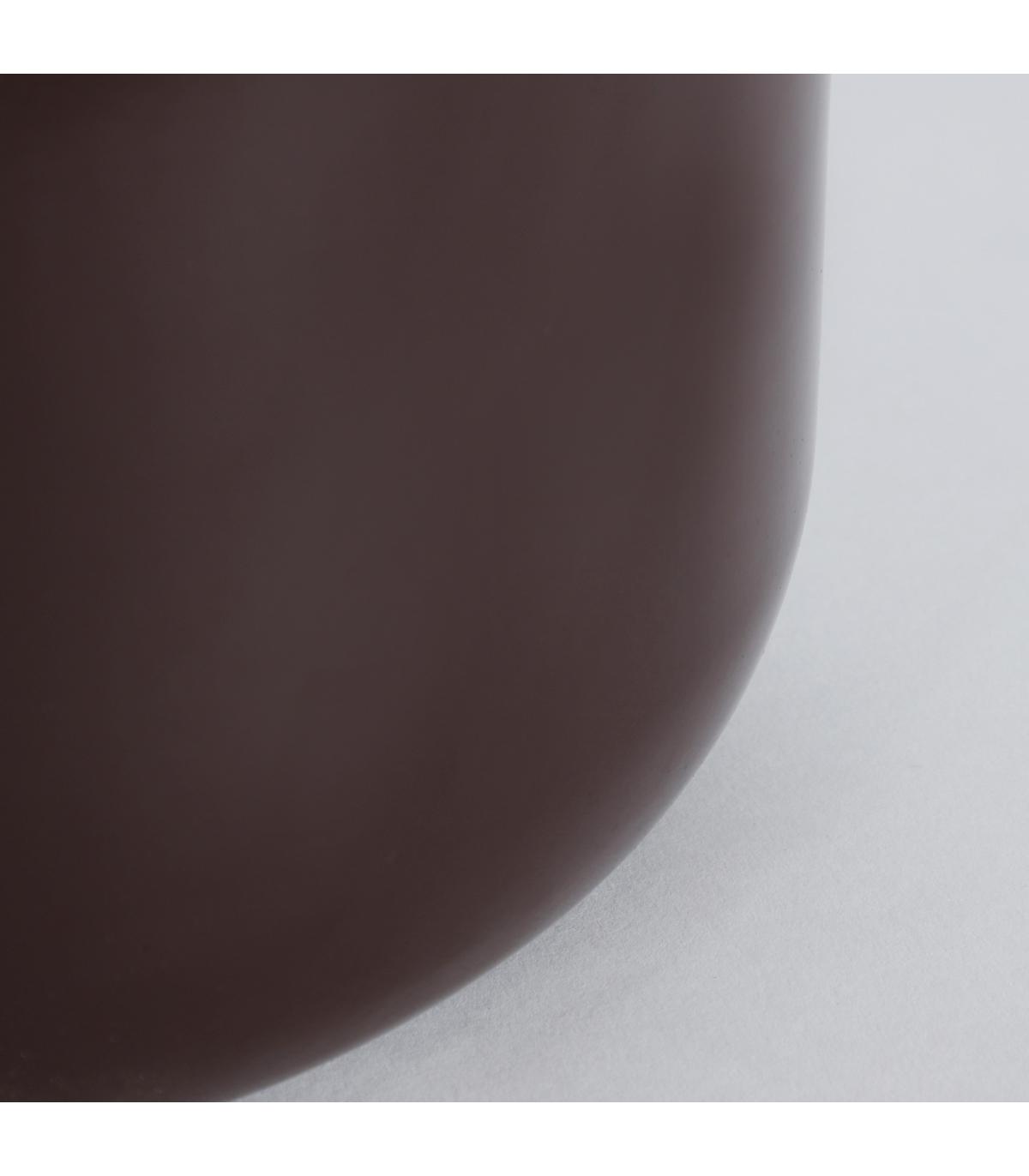 Mesa auxiliar Tau de estilo contemporáneo, fabricado en hierro en color chocolate con acabado brillo, combinado con madera de acacia en color marrón.