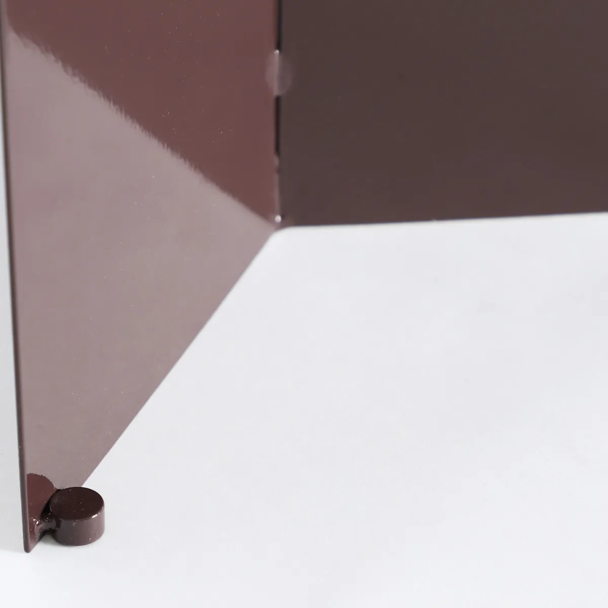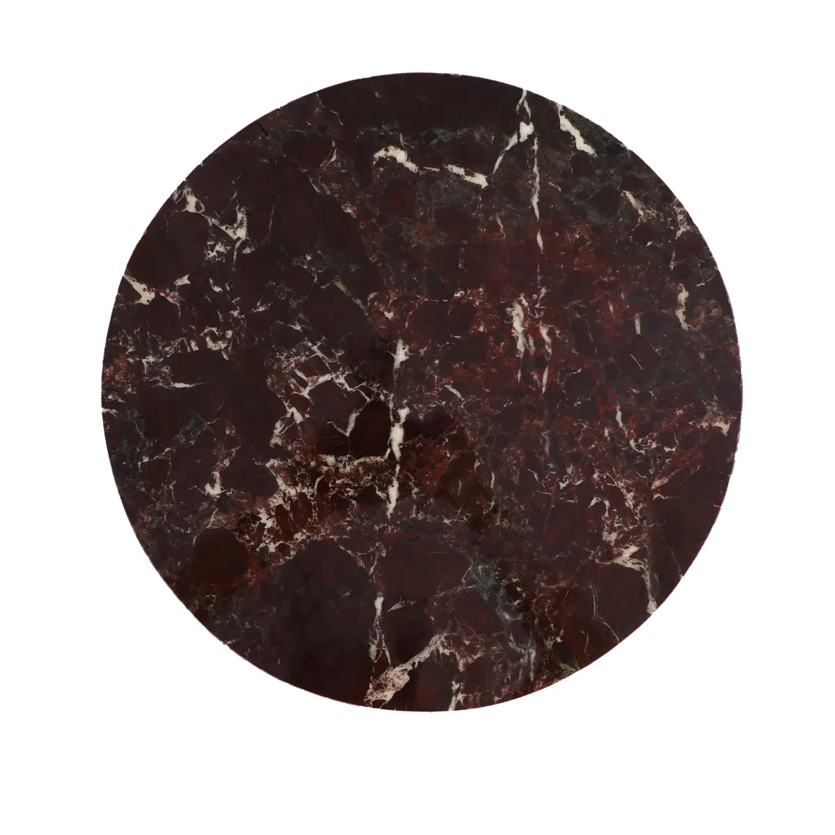 Mesa auxiliar Tilo de estilo contemporáneo, fabricado en hierro en color chocolate con acabado brillo, combinado con mármol sintético en color burdeos con acabado veteado.