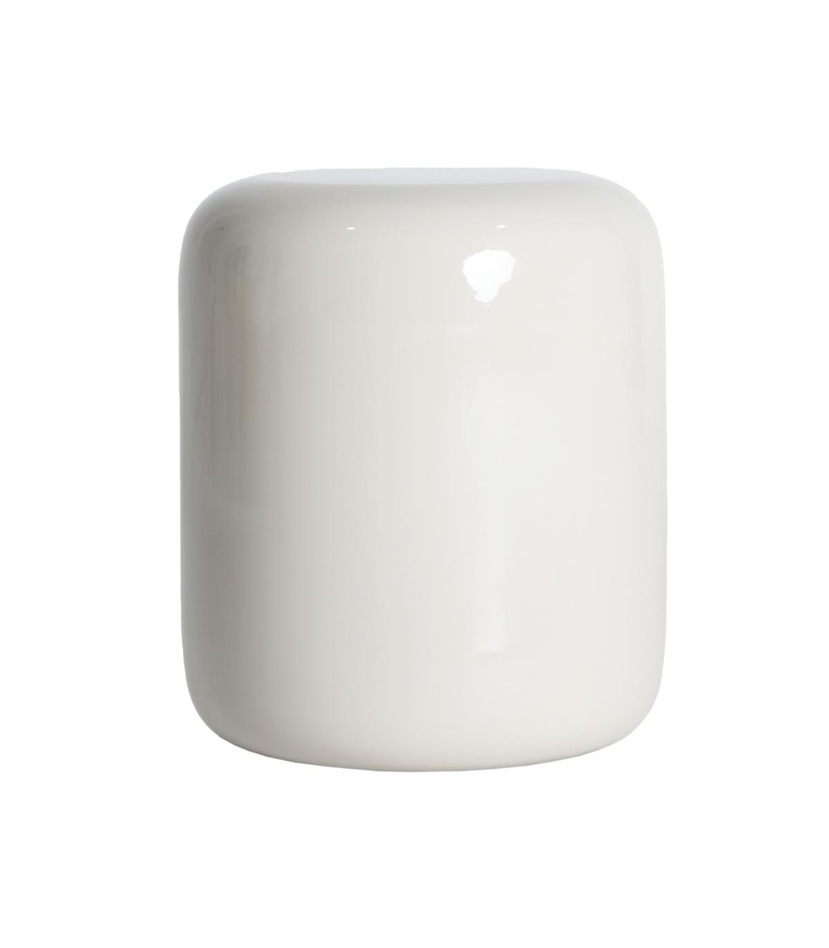 Mesa auxiliar Grei de estilo contemporáneo, fabricado en hierro en color blanco roto con acabado brillo.