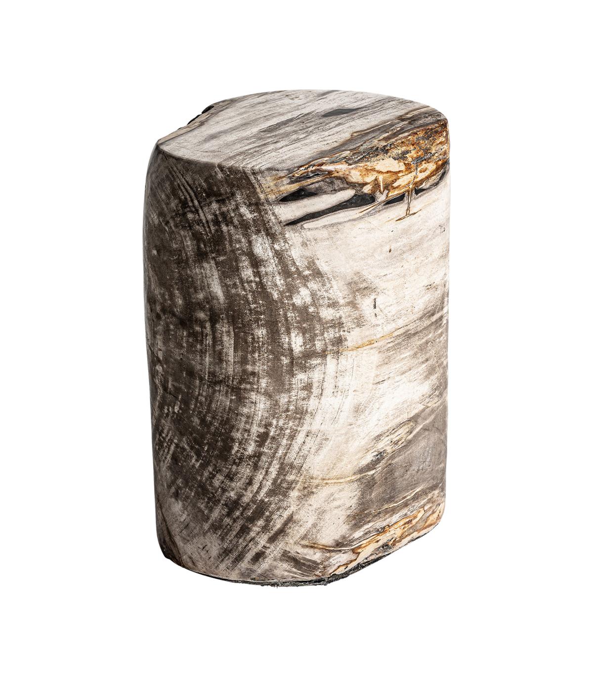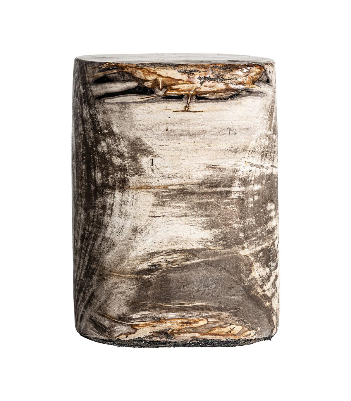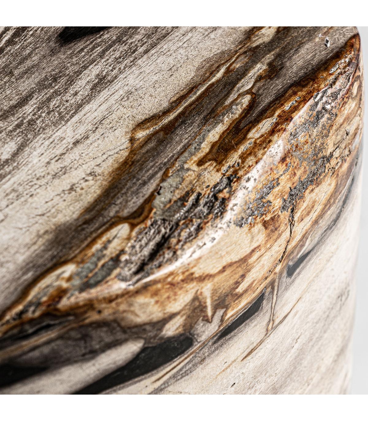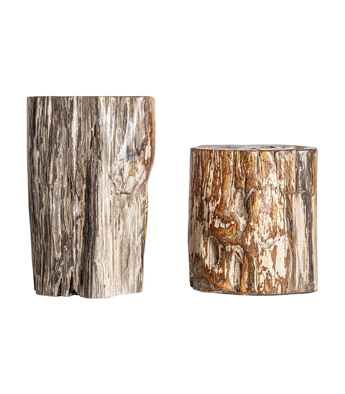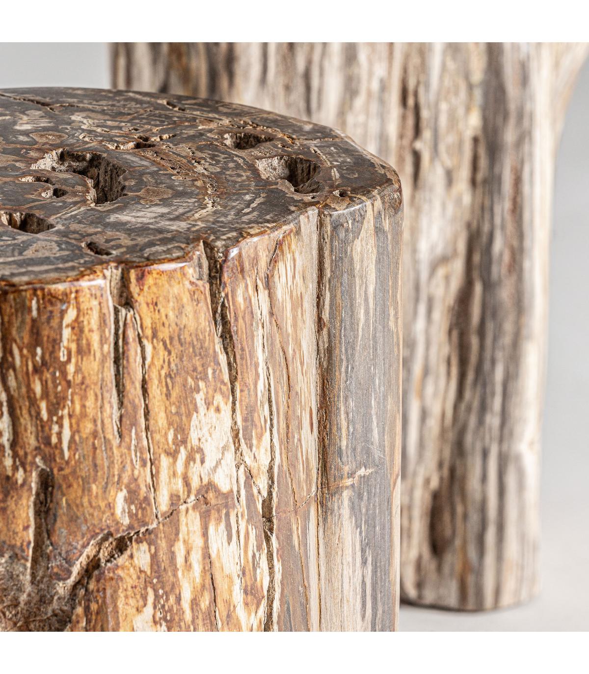 Mesa auxiliar Telti de estilo étnico fabricado en madera petrificada en color marrón con acabado envejecido en color beige.