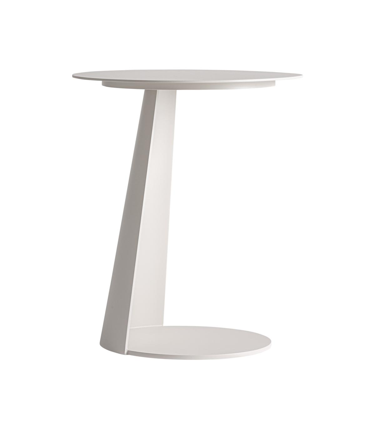 Mesa auxiliar Wengen de estilo contemporáneo, fabricado en aluminio en color beige.