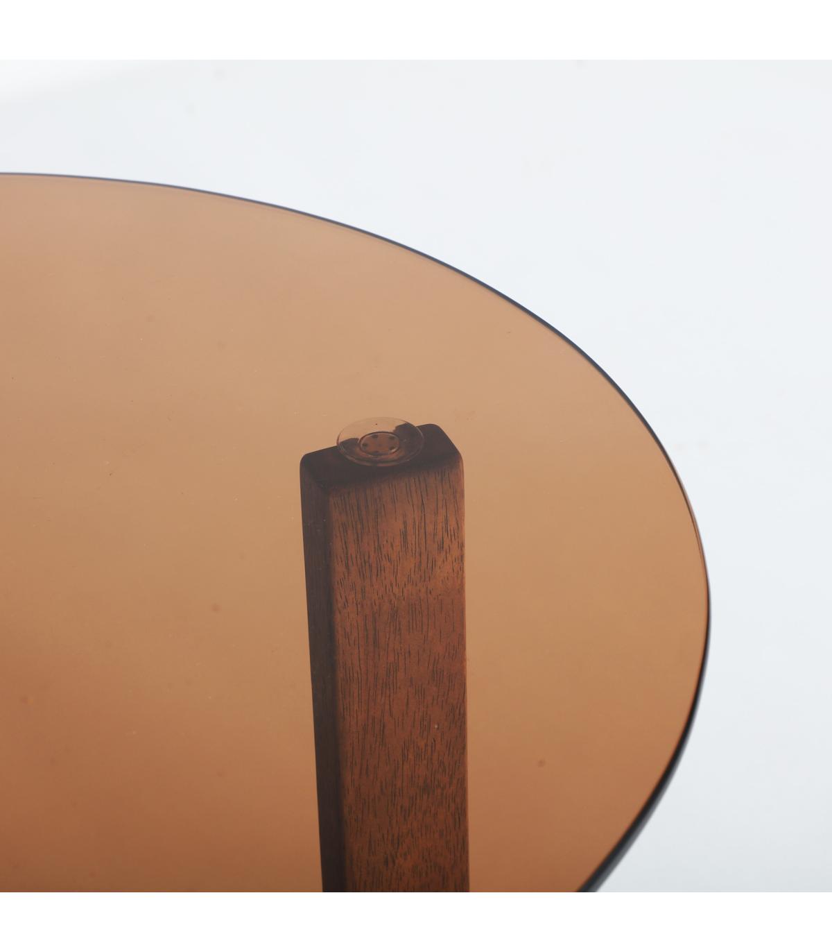 Mesa auxiliar Lubeca de estilo contemporáneo, fabricado en madera de caucho en color marrón, combinado con cristal en color marrón con acabado templado.