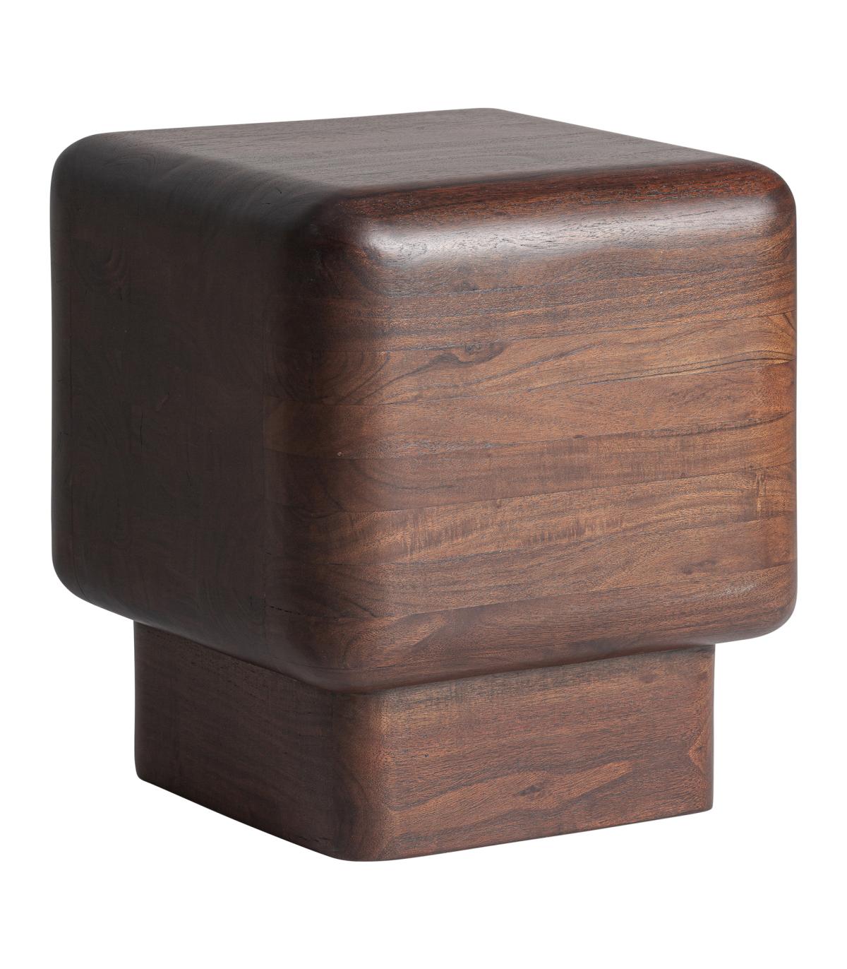 Mesa auxiliar fabricado en madera de acacia en color marrón.