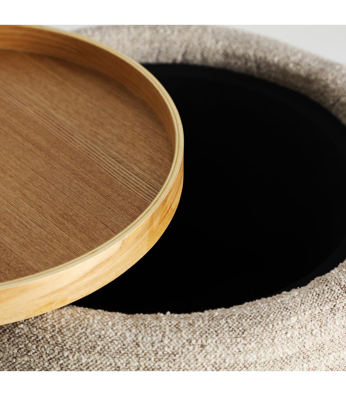 Mesa auxiliar Sils de estilo moderno, fabricado en madera dm en color marrón claro, combinado con poliéster en color beige.