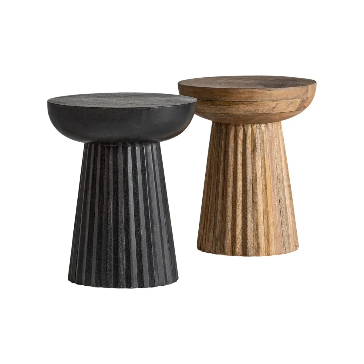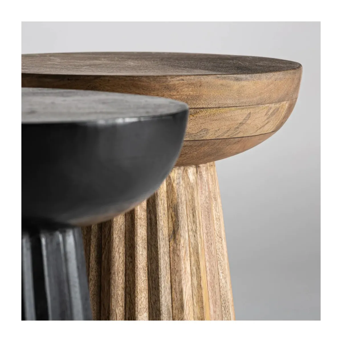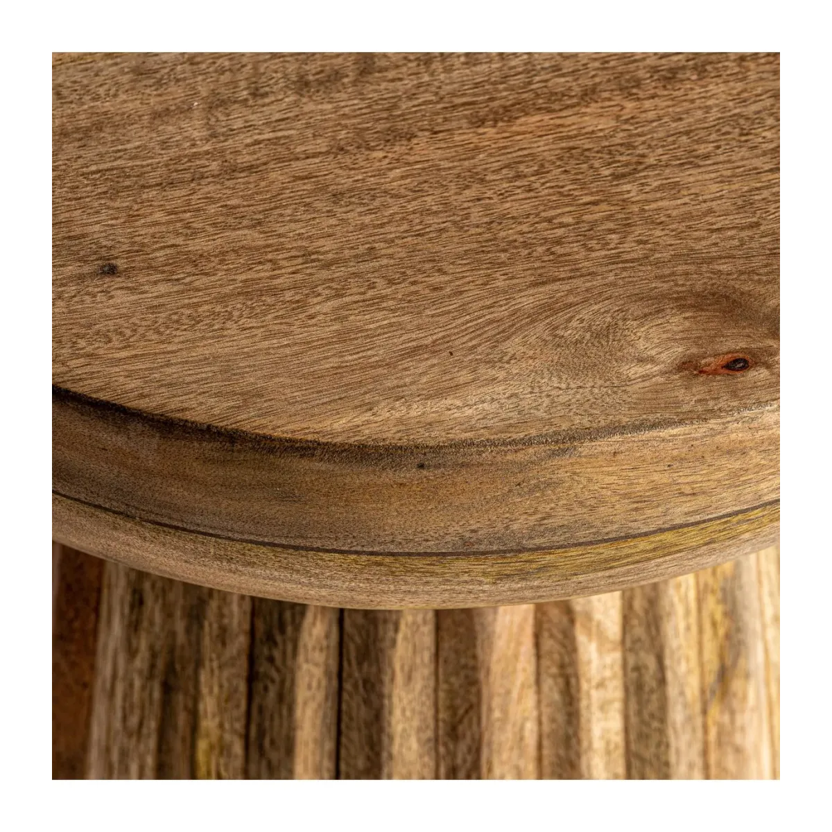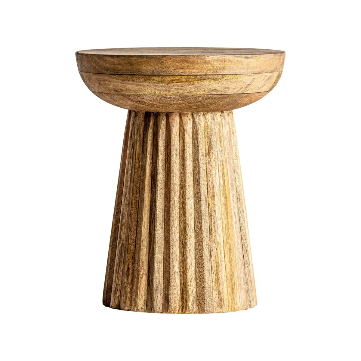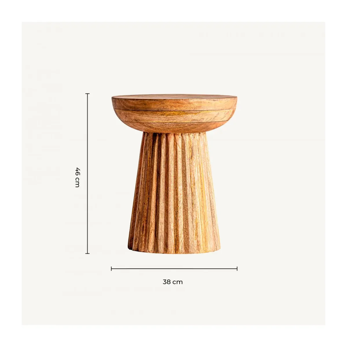 Mesa auxiliar plissé wood, en color natural, de estilo art deco. Fabricado en madera de mango.