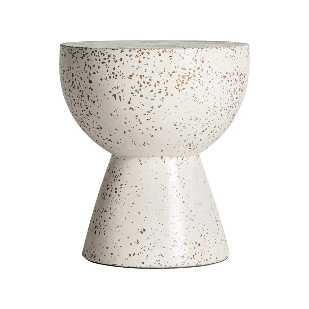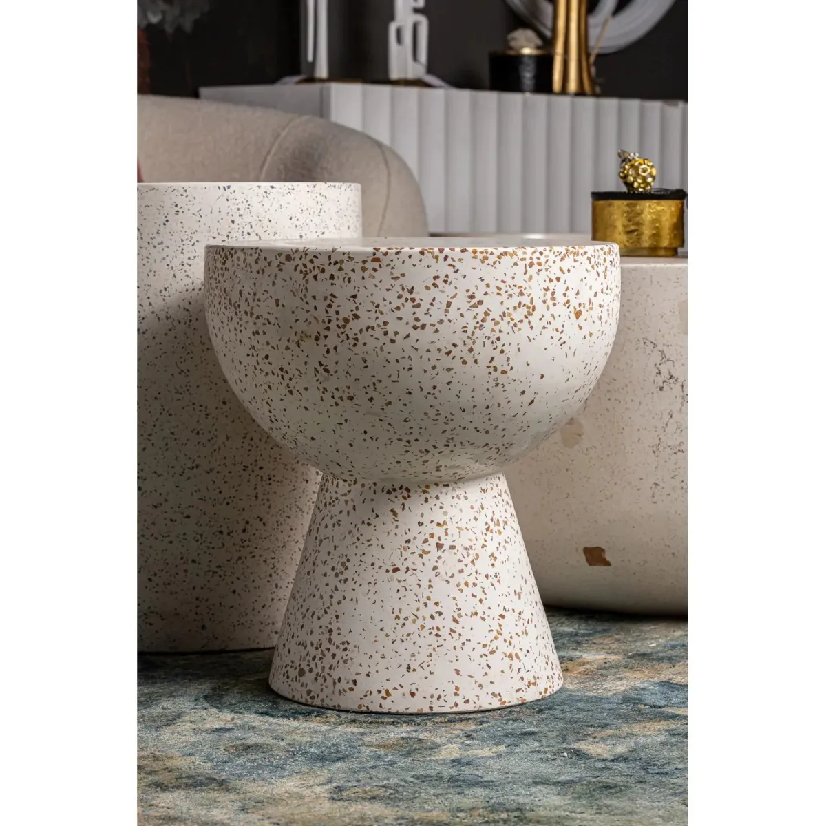 Mesa auxiliar albenga, en color blanco, de estilo contemporáneo. Fabricado en terrazo.