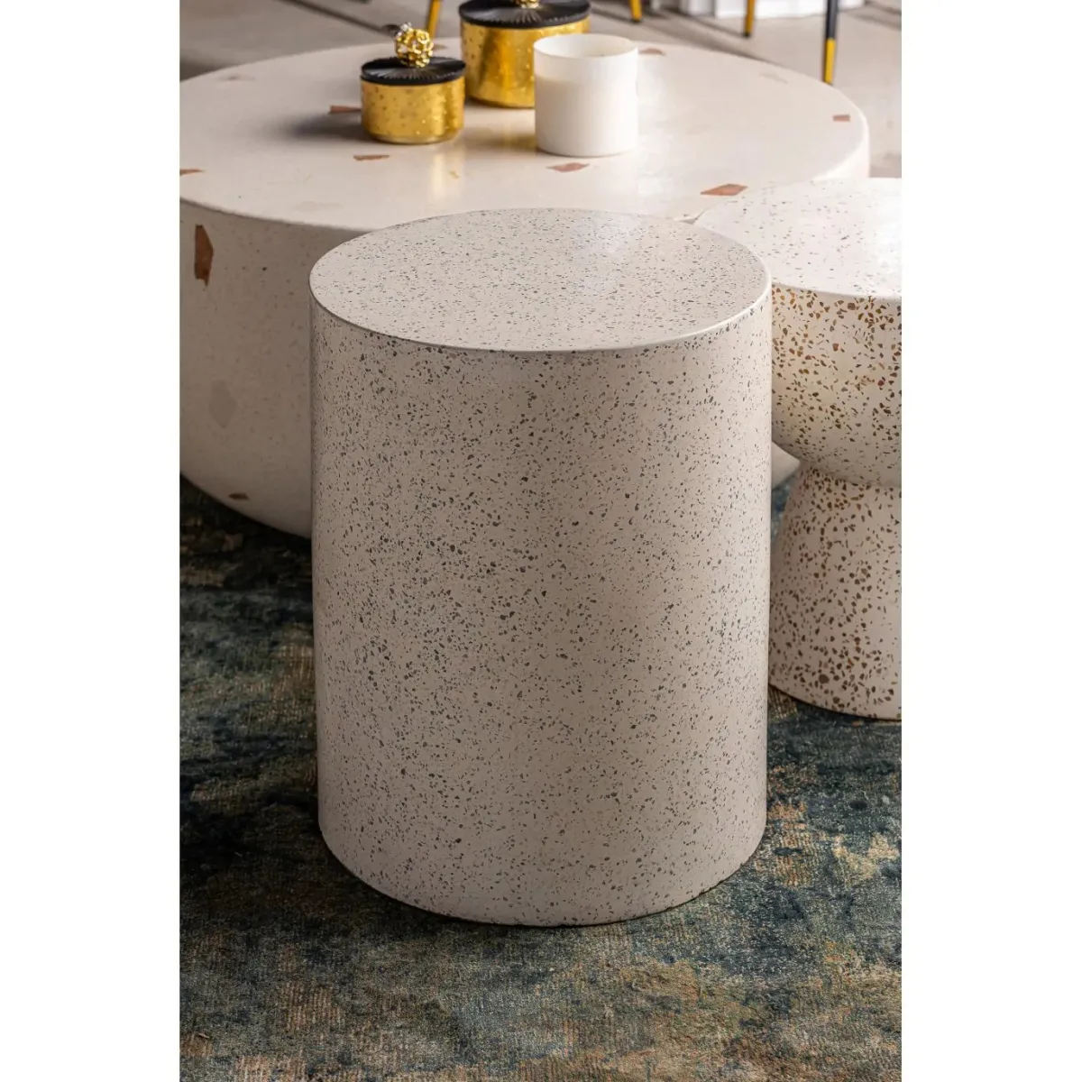Mesa auxiliar albenga, en color blanco, de estilo contemporáneo. Fabricado en terrazo.