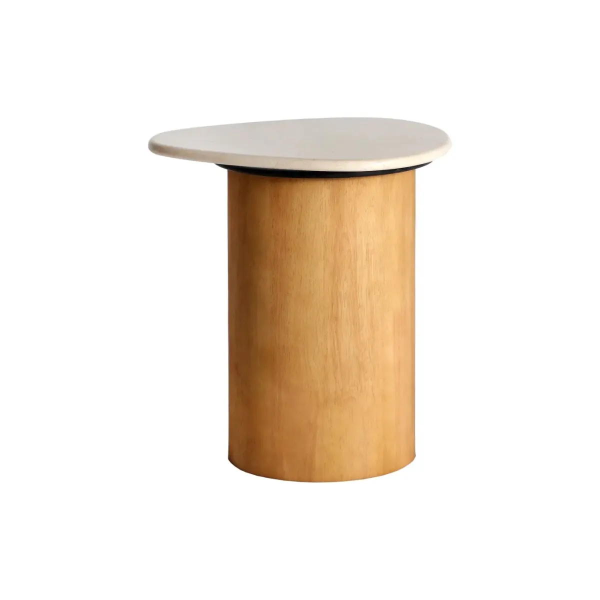 Mesa auxiliar lorach, en color natural, de estilo art deco. Fabricado en mármol, combinado con madera de haya. Producto desmontable.