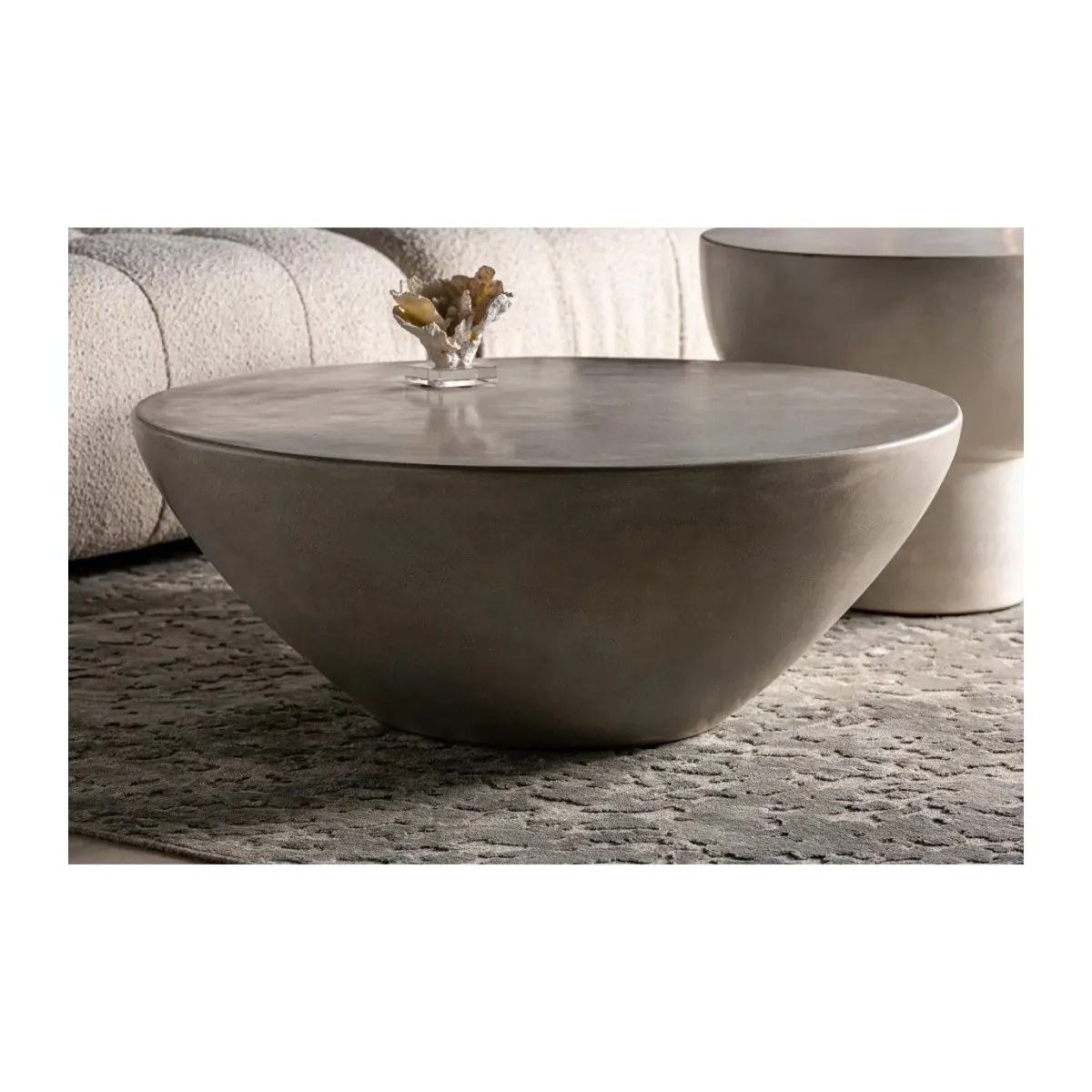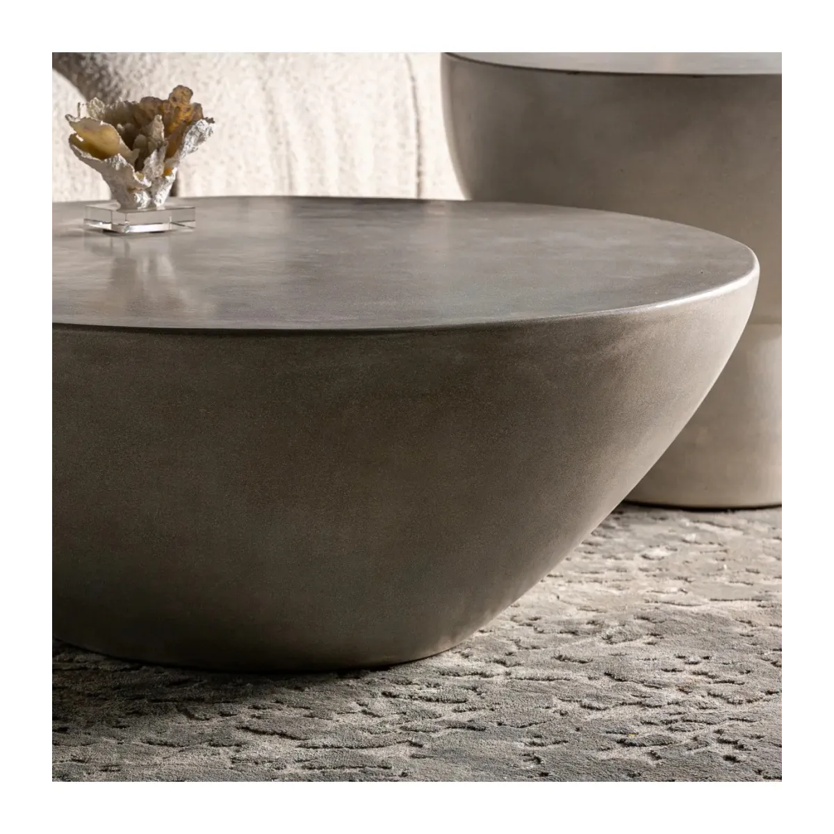 Mesa de centro telfs de estilo contemporáneo, fabricado en cemento en color gris.