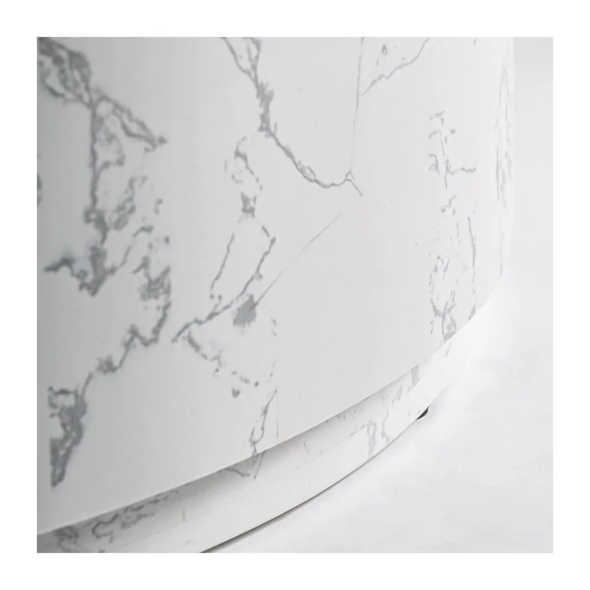 Mesa de centro fabricado en piedra sinterizada en color blanco.