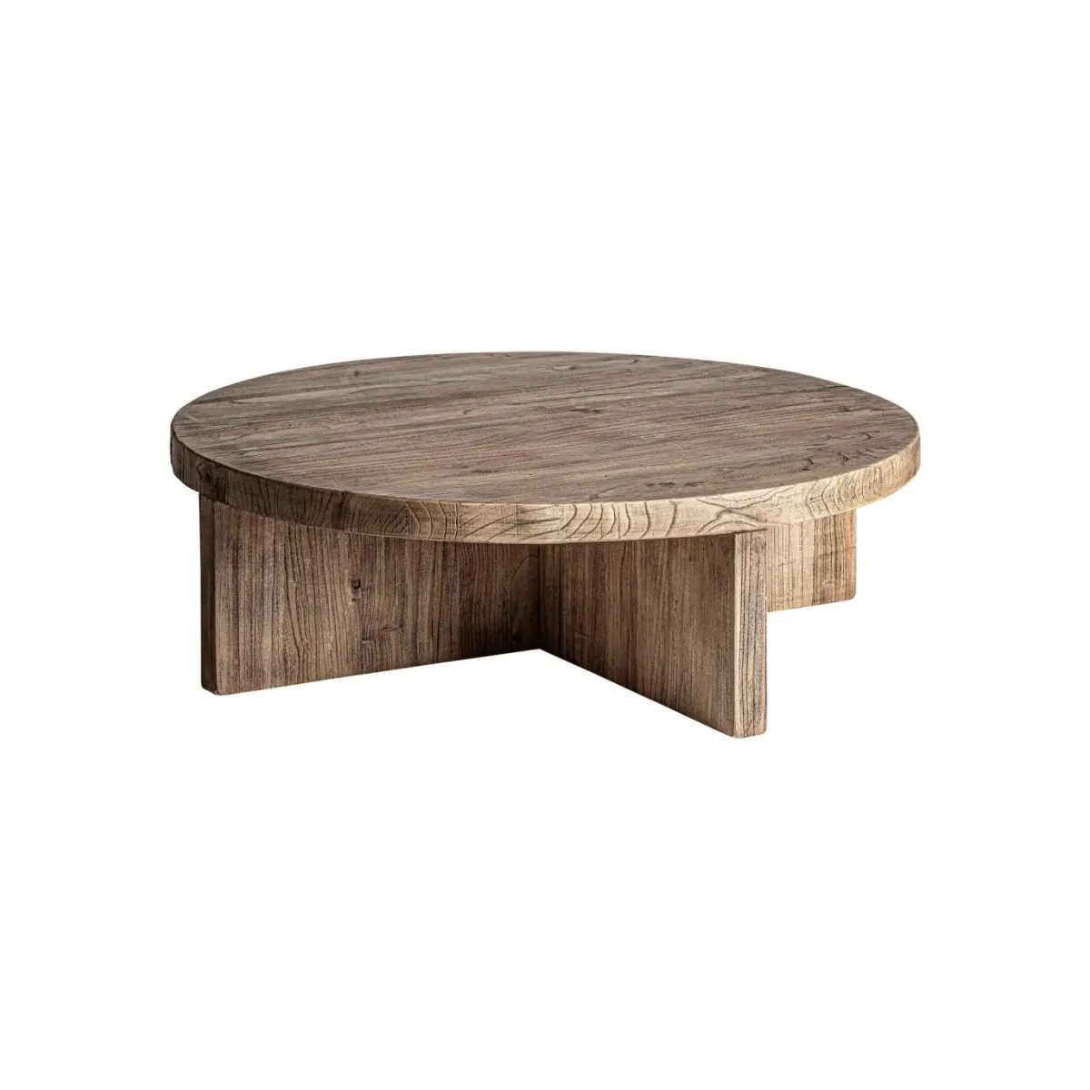 Mesa de centro fabricado en madera de olmo en color marrón.