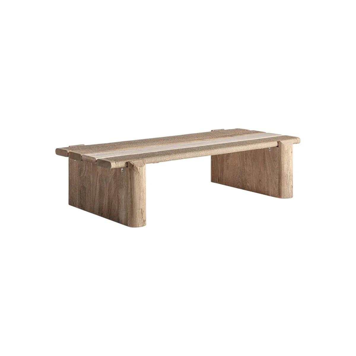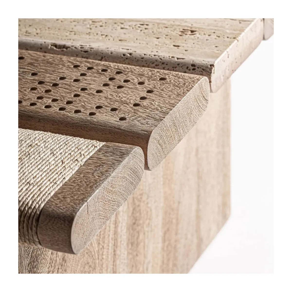 Mesa de centro jacquard de estilo contemporáneo. Fabricado en madera de mango en color marrón combinado con mármol en color marrón. Producto desmontable.
