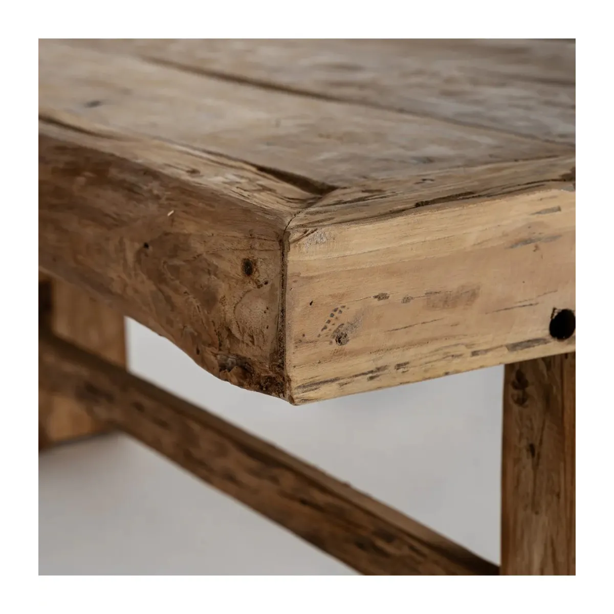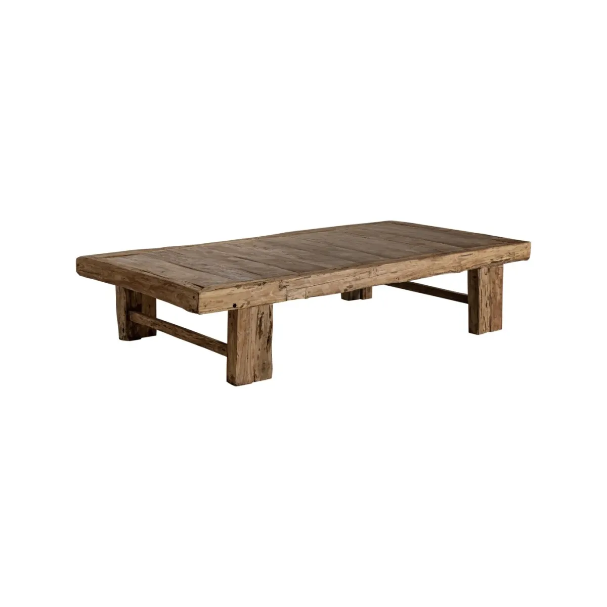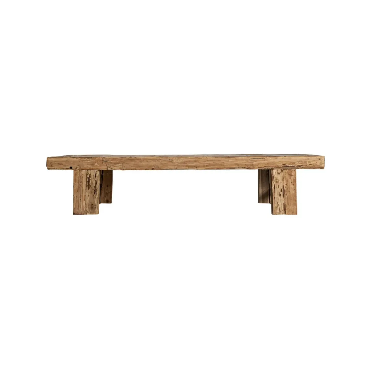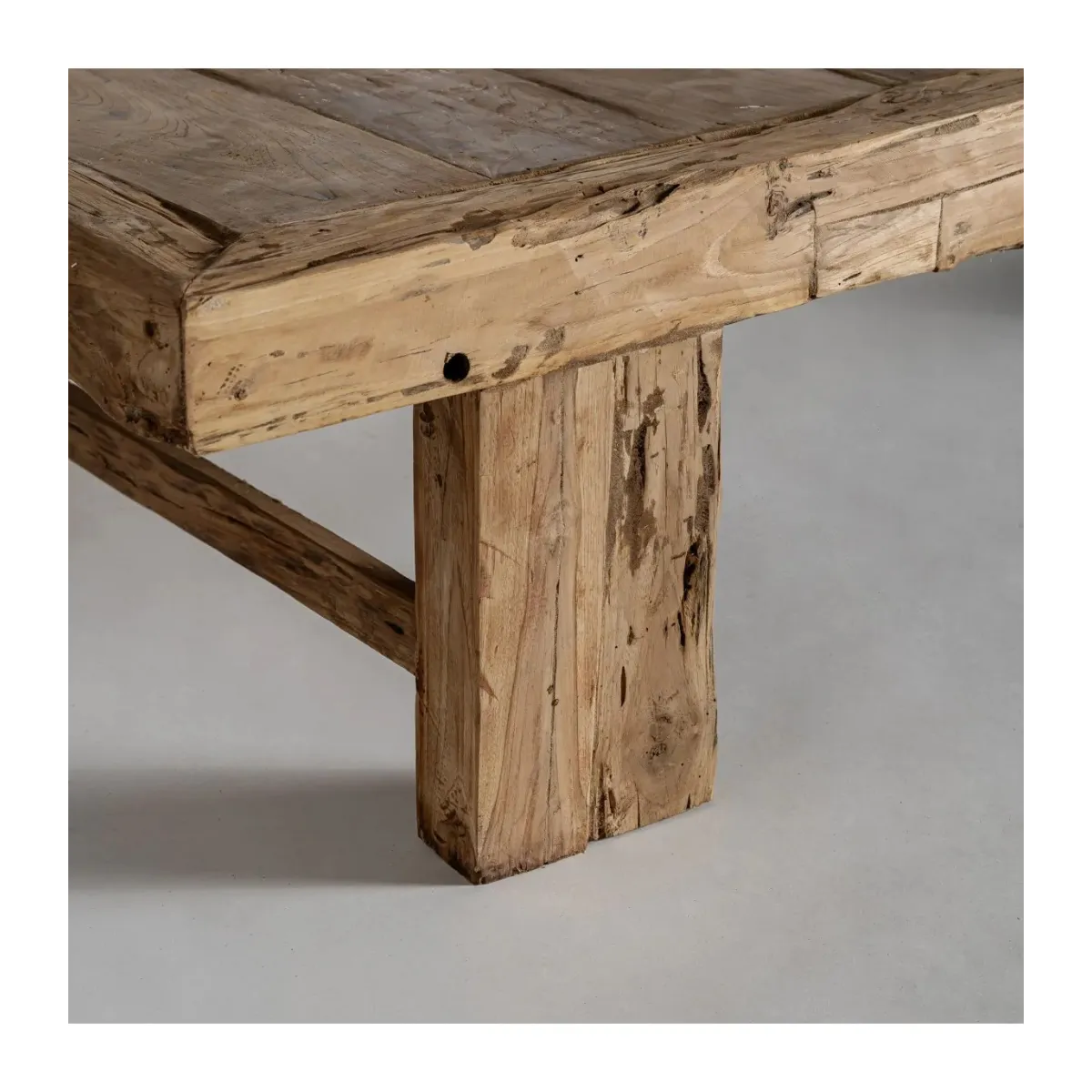 Mesa de centro kerp de estilo étnico fabricado en madera de teka en color marrón con acabado natural.