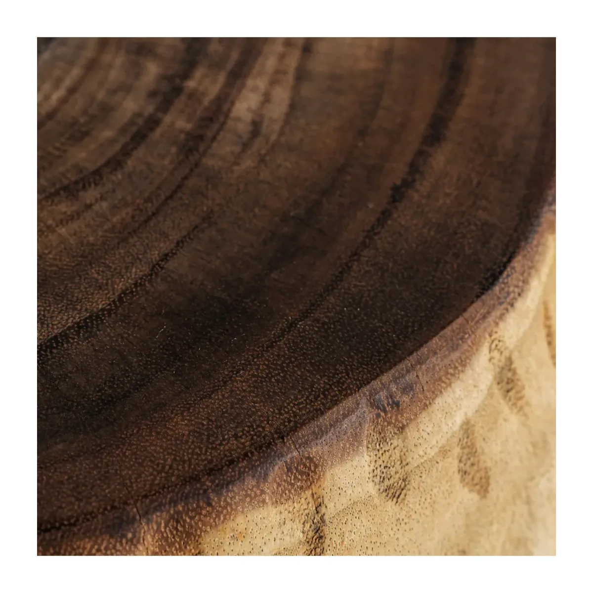 Mesa de centro Gairo de estilo étnico fabricado en madera suar en color tonos en marrón con acabado tallado.