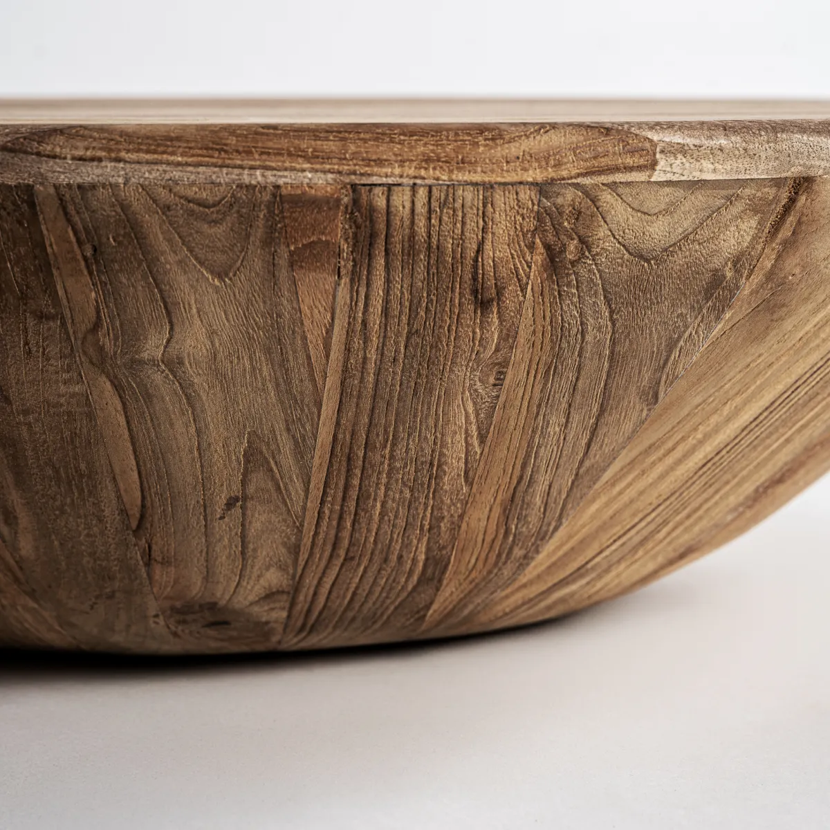 Mesa de centro Erloy de estilo rústico fabricado en madera de teka reciclada en color marrón claro con acabado envejecido.